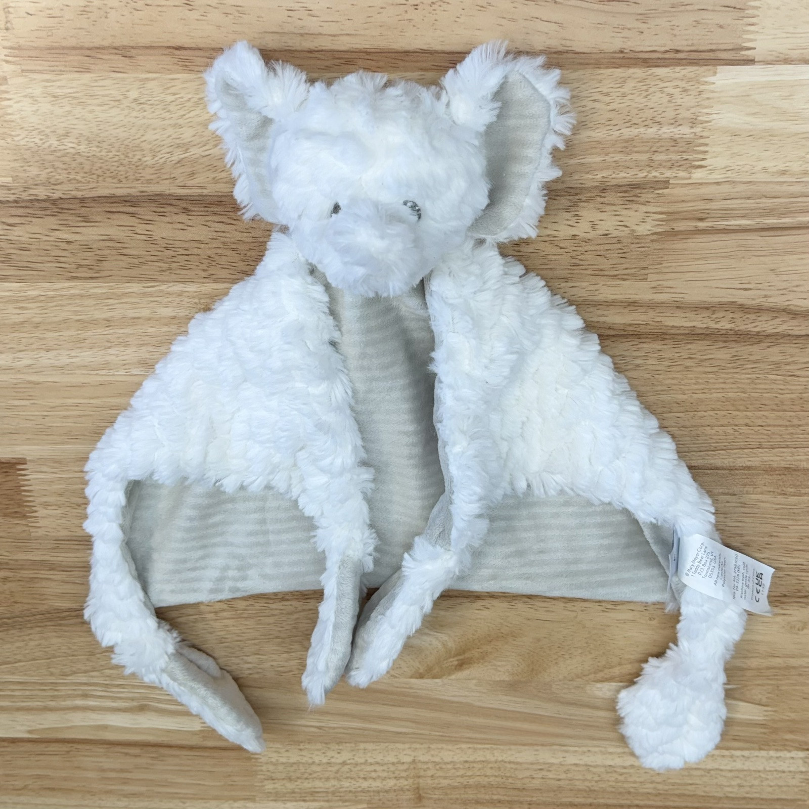 Mary Meyers Elephant Baby Lovey Security Blanket Plush Knotted White Gray Ears