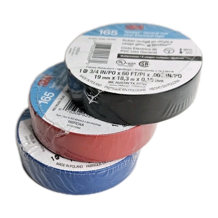 Lot 3 Rolls Vinyl Electrical Tape 165 Multi-purpose 3/4 X 60FT Black,Red,blue