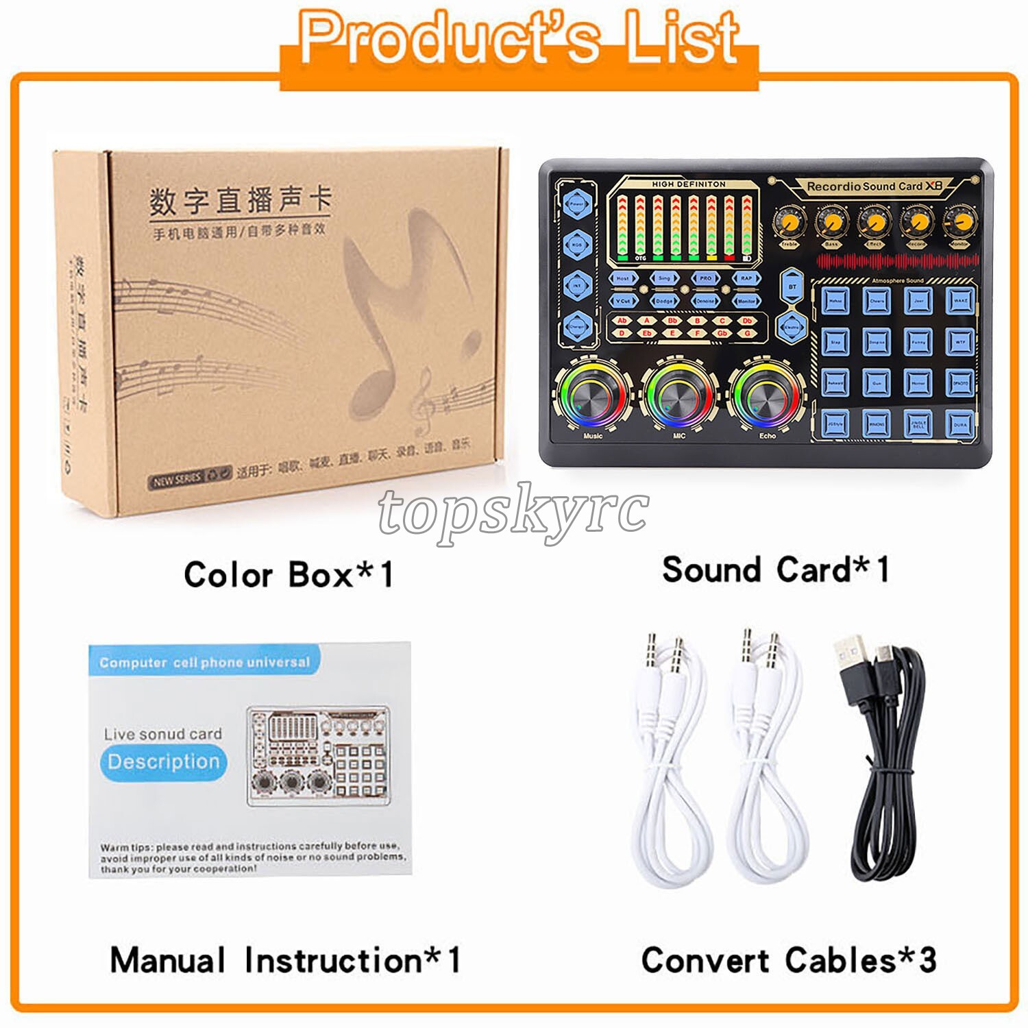 GAX-X8P 48V Digital Live Broadcasting USB Sound Card w/ Colorful RGB Lights ty23