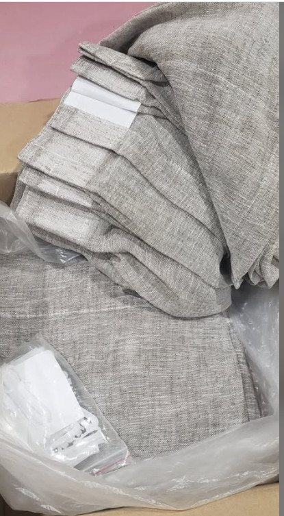 Beige Semi-Sheer Pinch Pleated Faux Linen Curtains 92L x 46 W x2 w/Clips