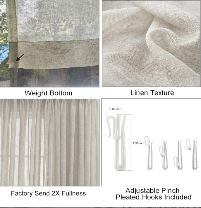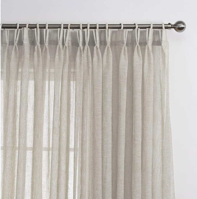 как выглядит Beige Semi-Sheer Pinch Pleated Faux Linen Curtains 92"L x 46" W x2 w/Clips фото