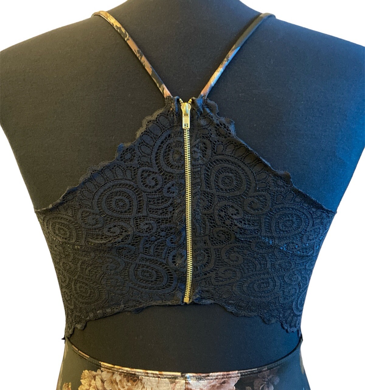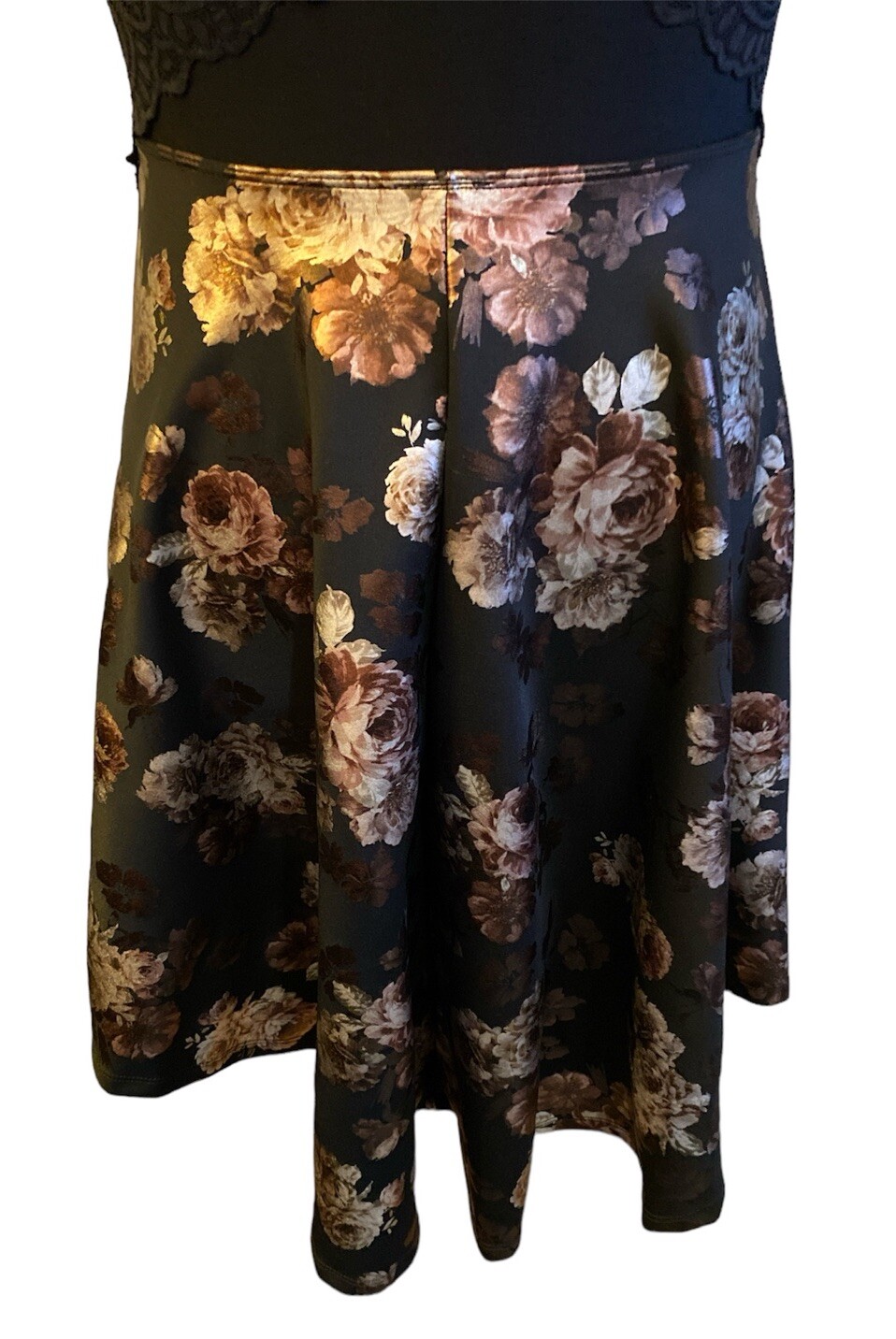 Windsor Metallic Floral Scuba Lace Back Dress M Runs Small Party Prom NYC Flare