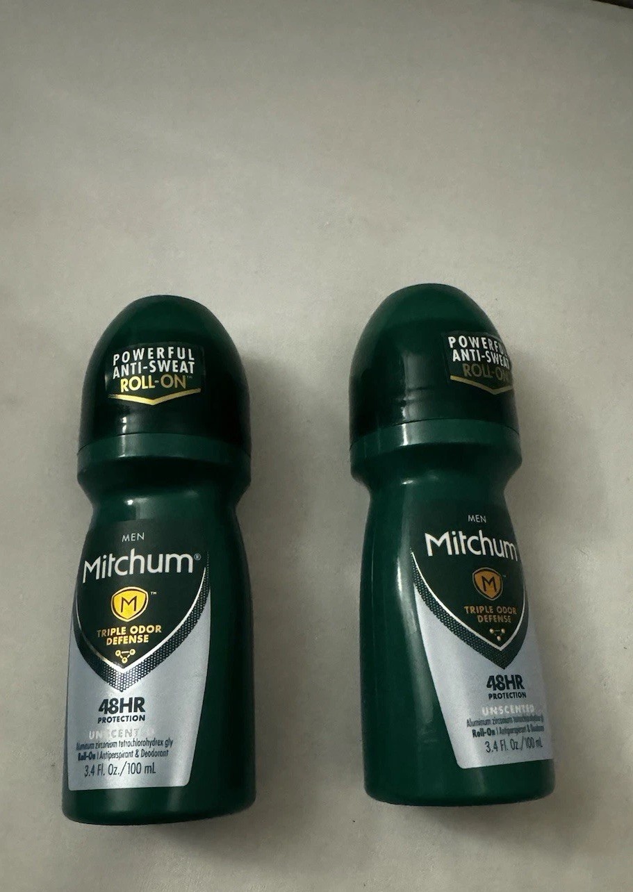 LOT 2 MITCHUM TRIPLE ODOR DEFENSE ANTIPERSPIRANT DEODORANT ROLL ON UNSCENTED