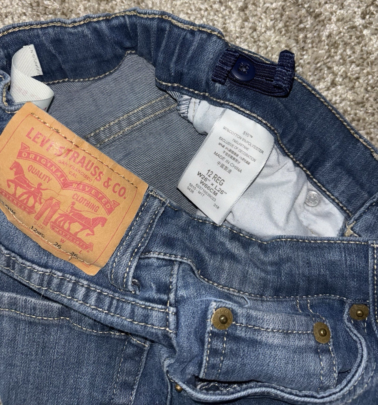 как выглядит Levis NWT Boys Teens 510 Sz 12 Stretch 26x26 Denim Medium Wash Blue Jeans Good фото