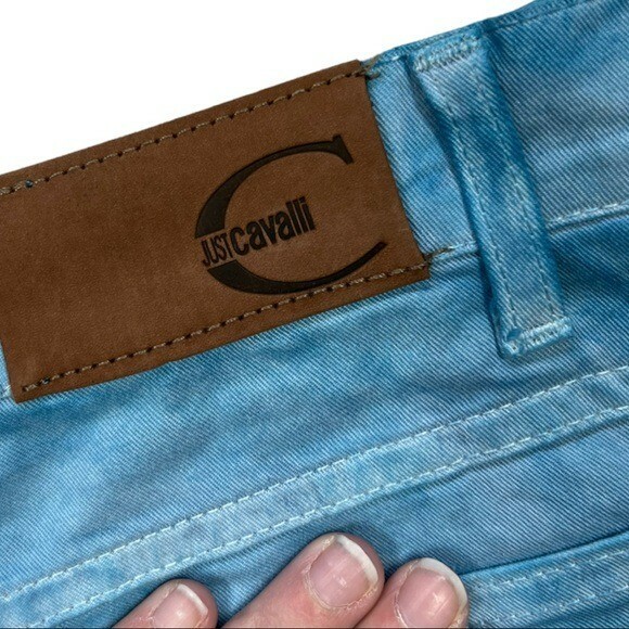 как выглядит VTG 90s Sky Blue Water Color Dyed Just Cavalli High Waisted Pants Sz 29 фото