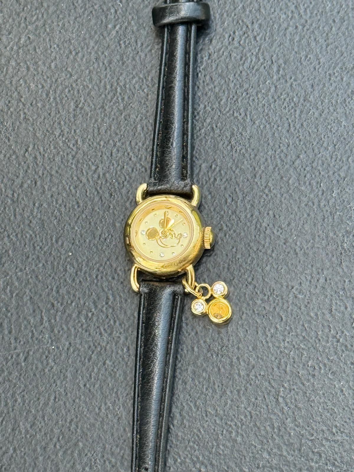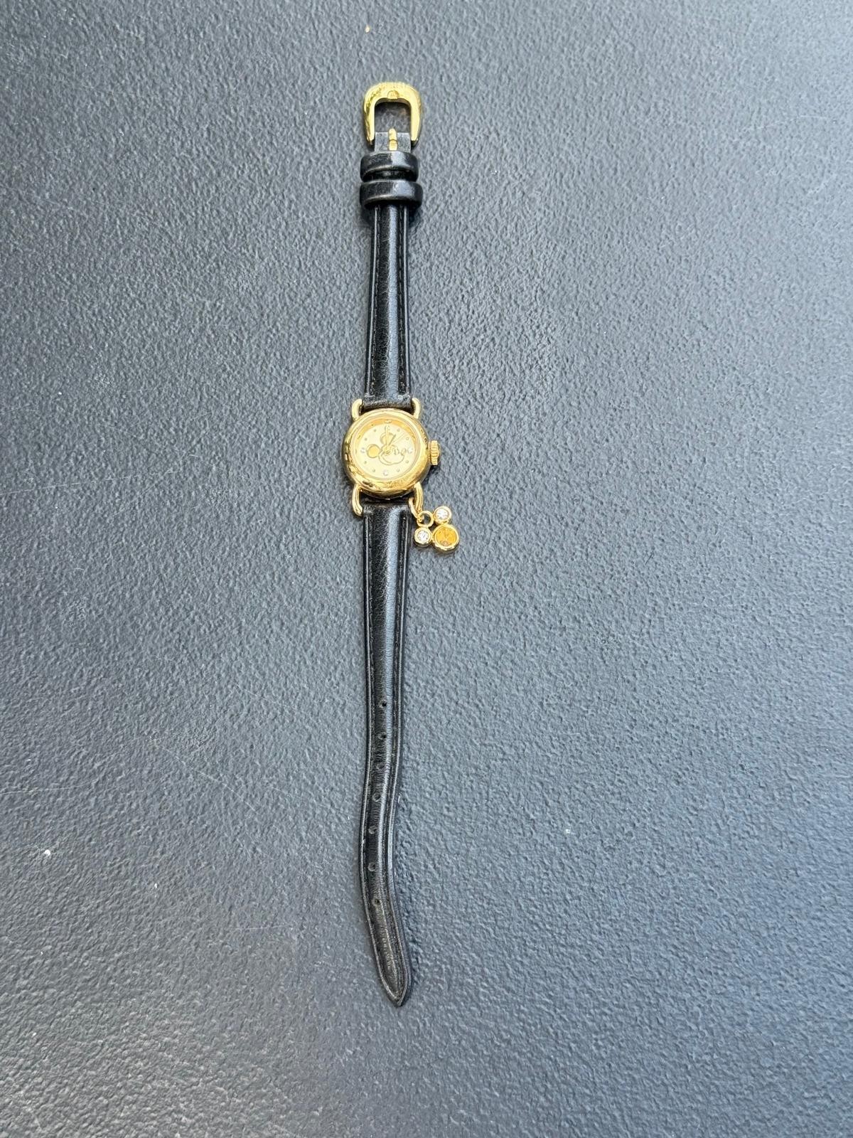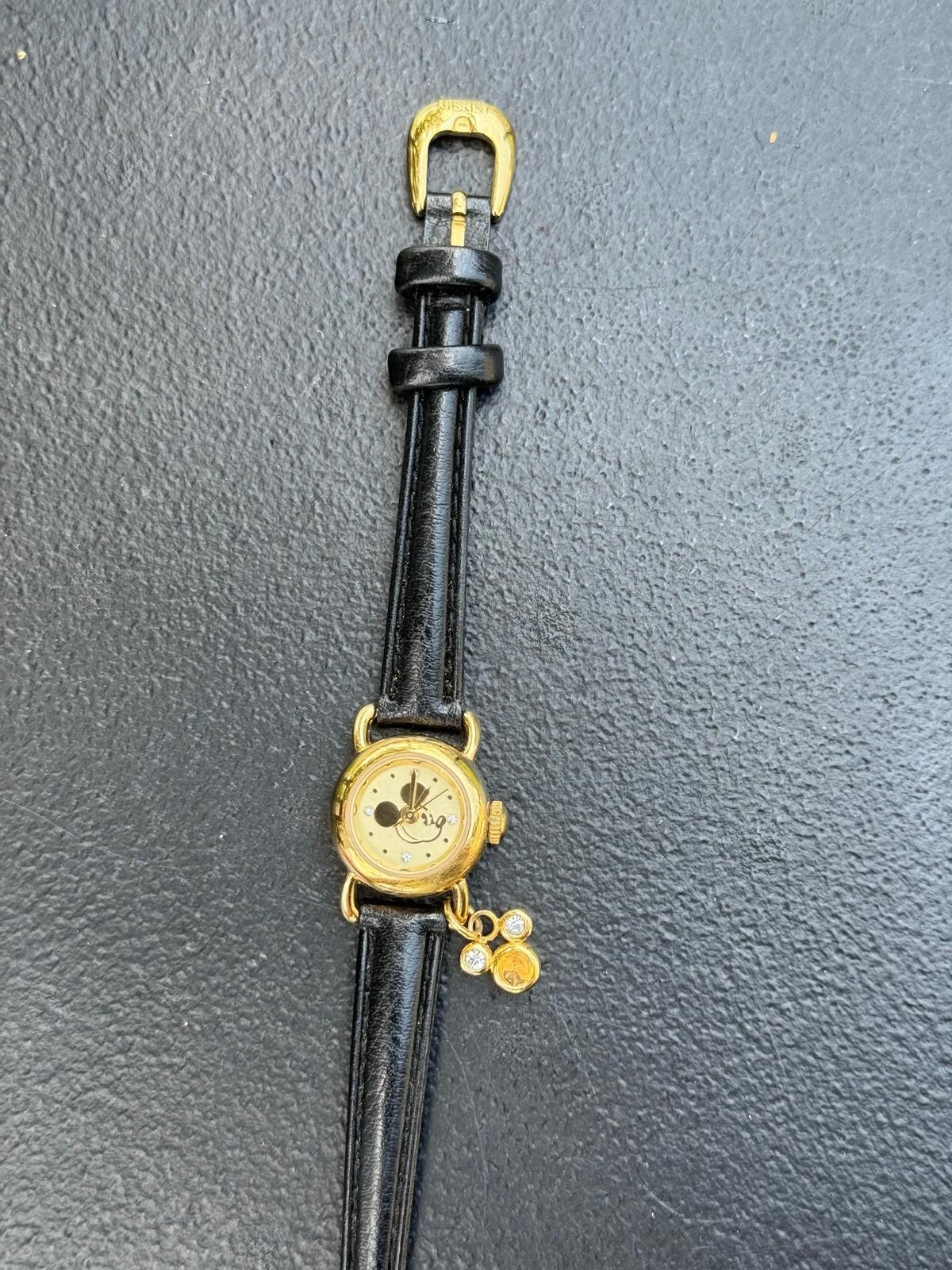как выглядит Disney Mickey Mouse Watch Bracelet Black Band Gold Tone Face фото