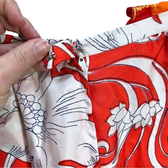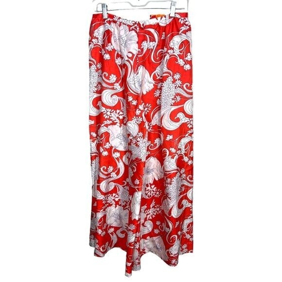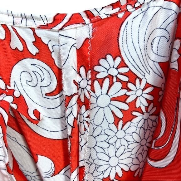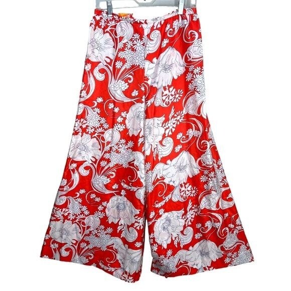 1960 s Orange/Blue/ivory Beachcomber Floral Polyester Palazzo Pants Vtg Sz 14