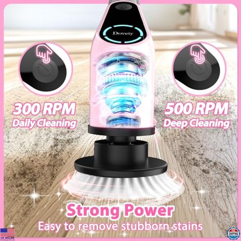 Cordless Electric Spin Scrubber, 8 Brush Heads, Adjustable Speed, Extendable