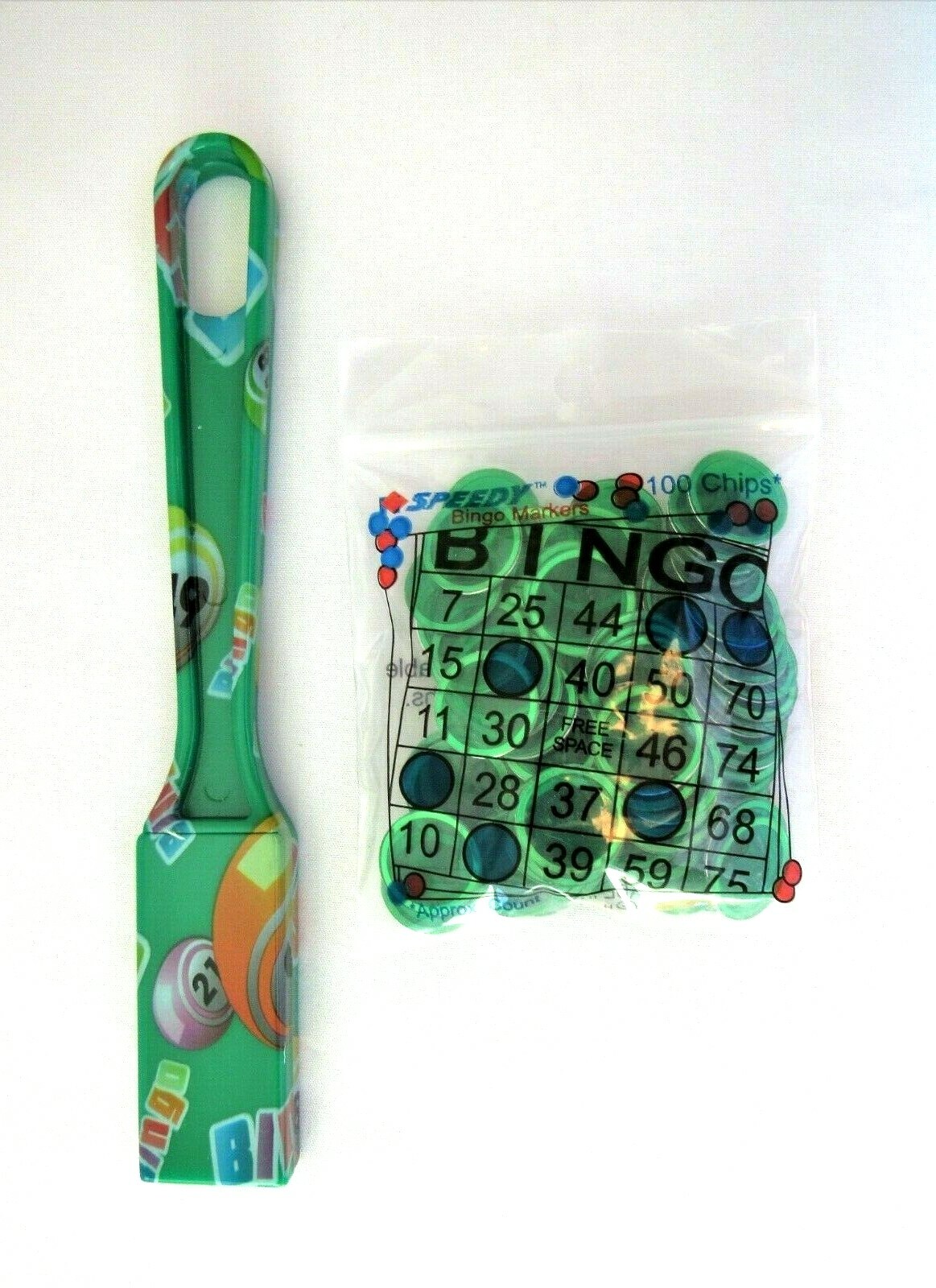 Bingo Green Magnetic Wand with 100 Chips Bingo Ball Design Quick Pick-Up New