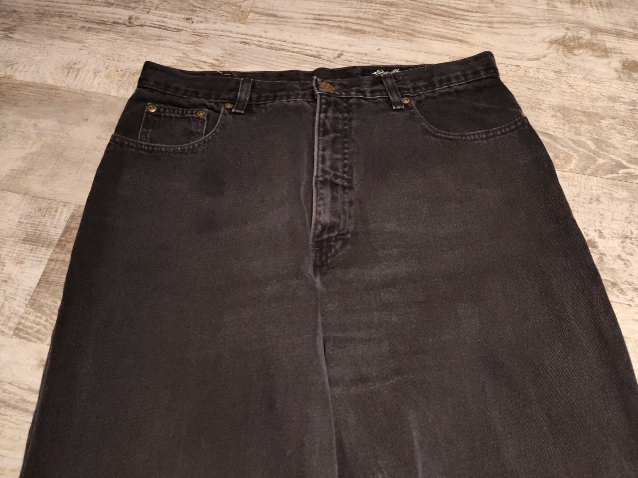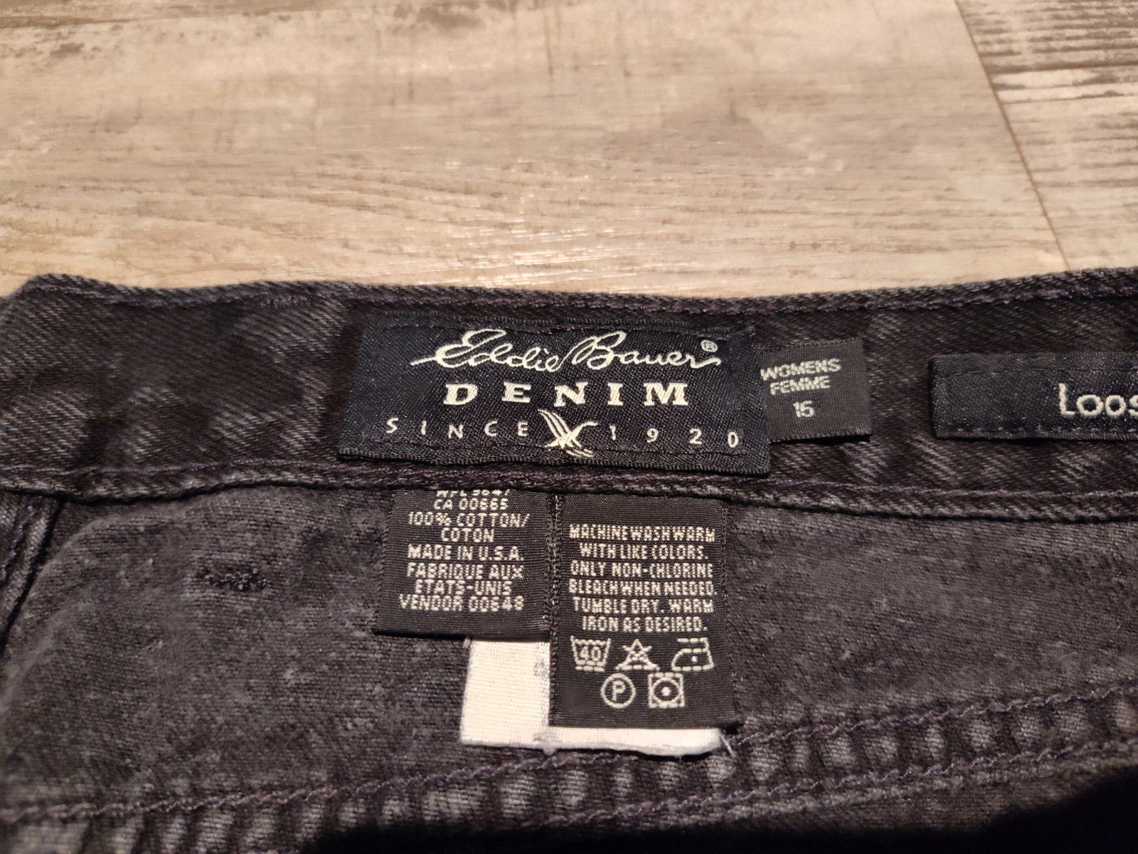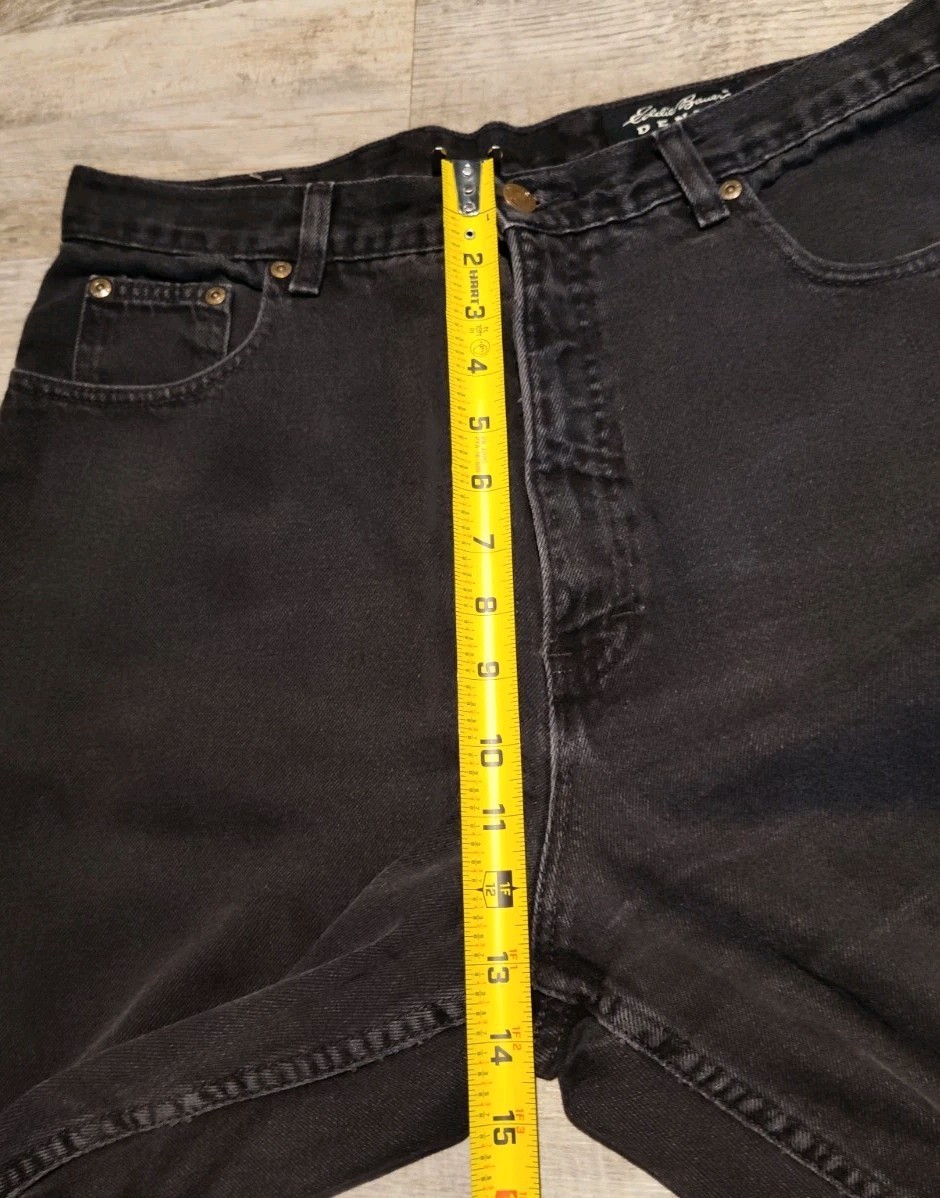 как выглядит Vtg Eddie Bauer Denim Jeans Womens 16 Black High Waisted Tapered Mom USA Made фото