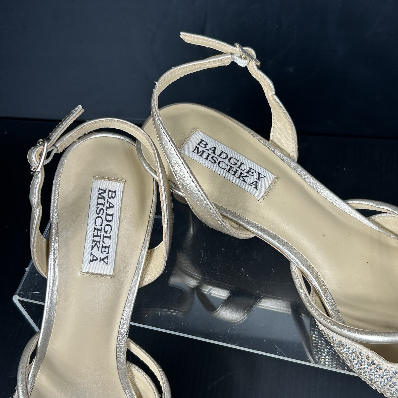 как выглядит Badgley Mischka Angelina Sz 7 RUNS NARROW Champagne Rhinestone Kitten Heel Pump фото