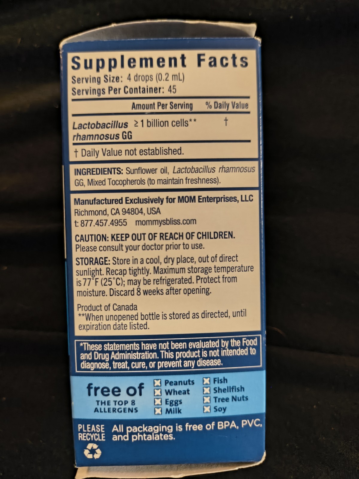 как выглядит Mommys Bliss Baby Probiotic Drops 0.34 45serv.     Exp: 1/22/27 фото