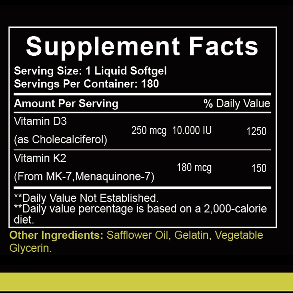 Ingredients: Vitamin D, Vitamin D3 (Cholecalciferol), Vitamin K2 (Menaquinone)