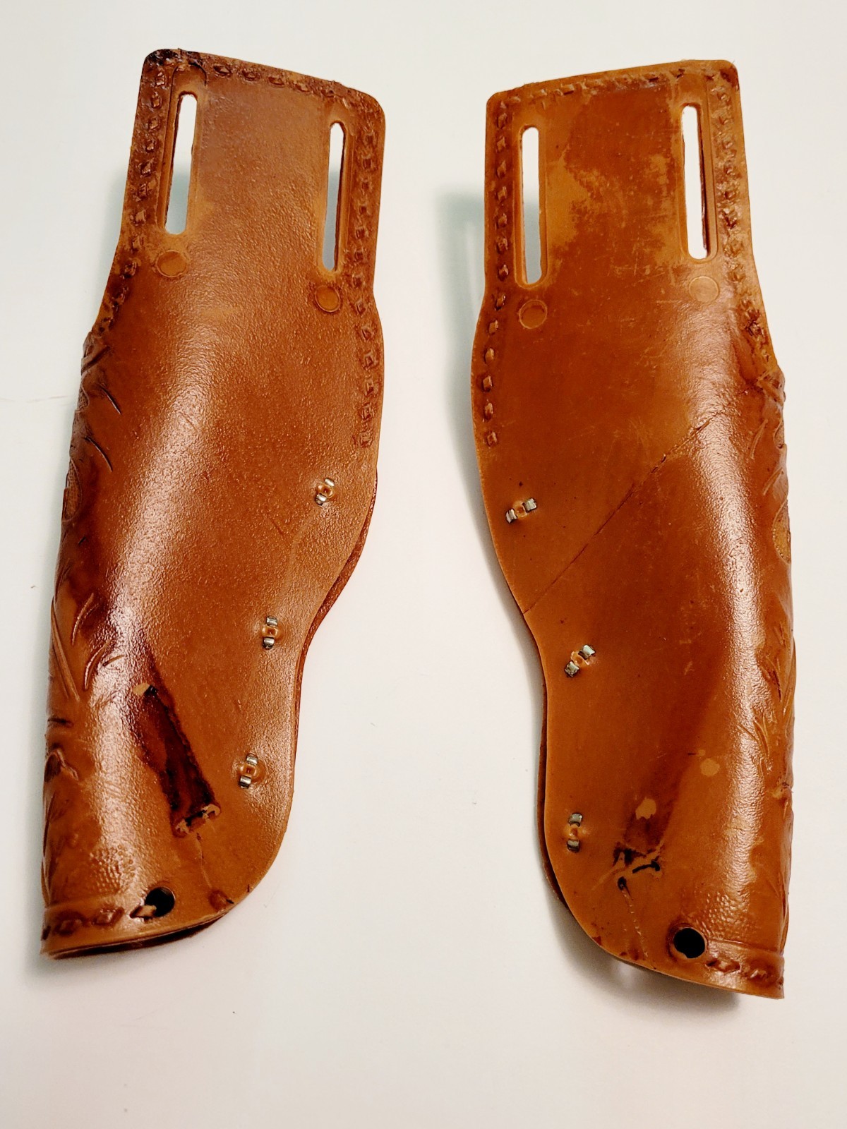 Vtg Oak Leaf Acorn Tan Brown Holsters Left Right for Pony Boy Toy Cap Guns