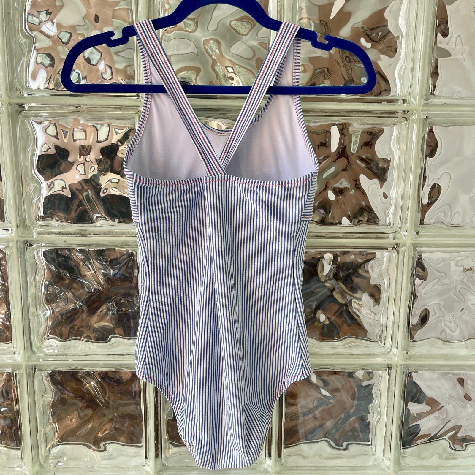 Lands End Girls Seersucker Bow Swimsuit 14