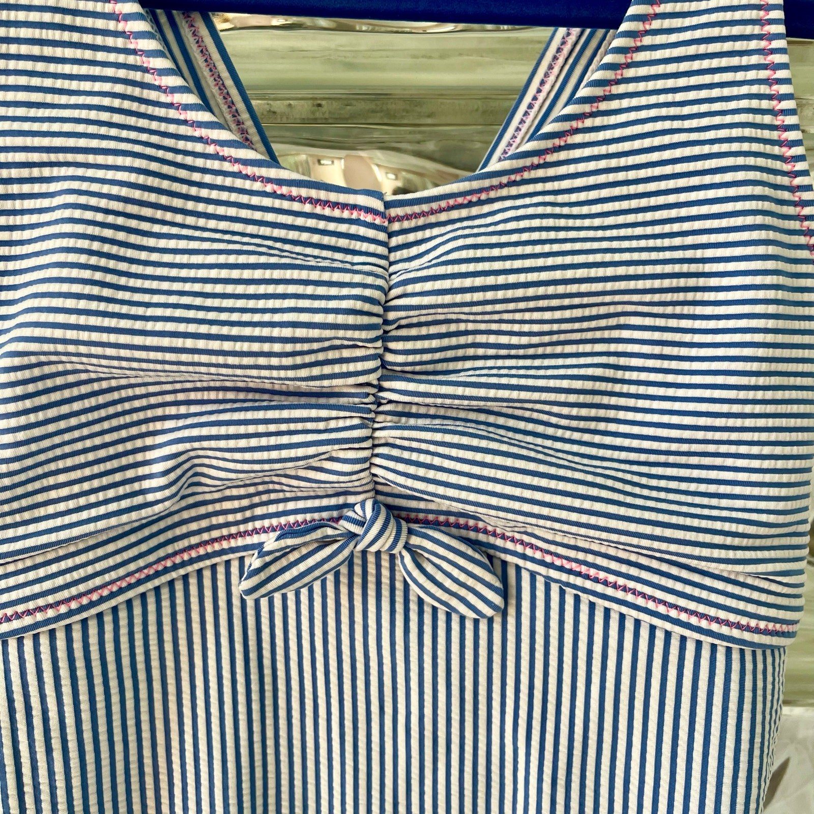 как выглядит Lands End Girls Seersucker Bow Swimsuit 14 фото