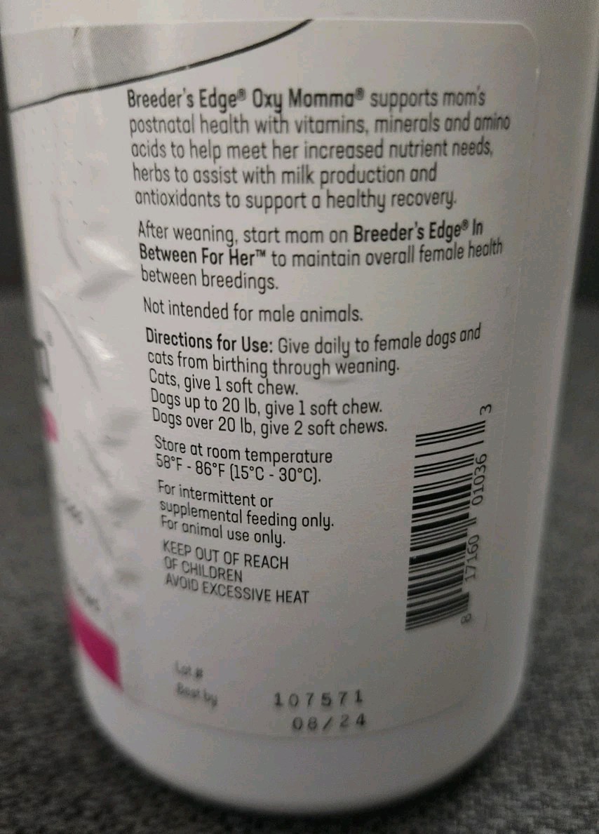 New Breeder's Edge Oxy Momma Postnatal Vitamin Cat Small Dog 40 Soft Chews EXP