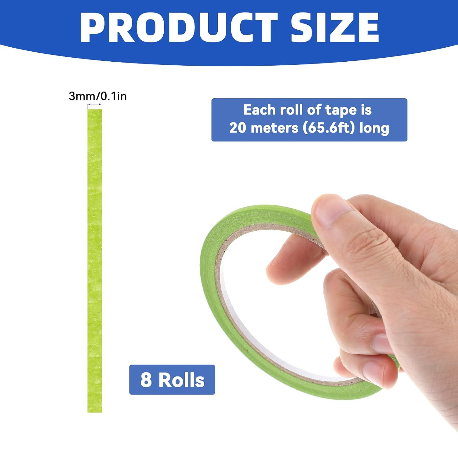 8 Rolls Green Pinstripe Masking Tape 1/8 Inch Thin Line Painter Tape for Paintin