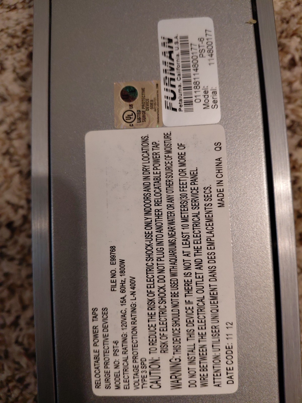 FURMAN PST-6 Multi-Stage Protection Outlet AC Power Conditioner Station