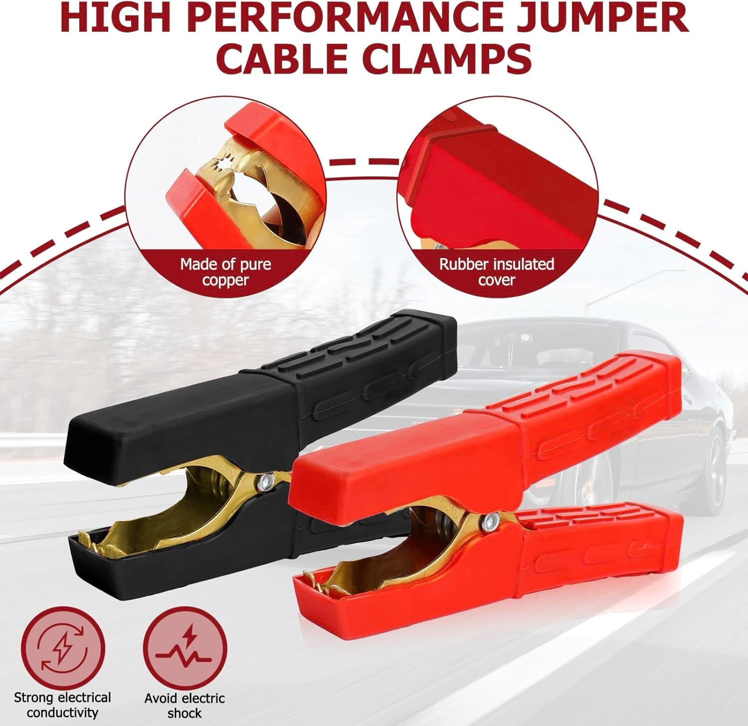 как выглядит Jumper Cable Clamps 2 Pair Battery Clamps Pure Copper Jumper Cable Ends 4 NEW фото