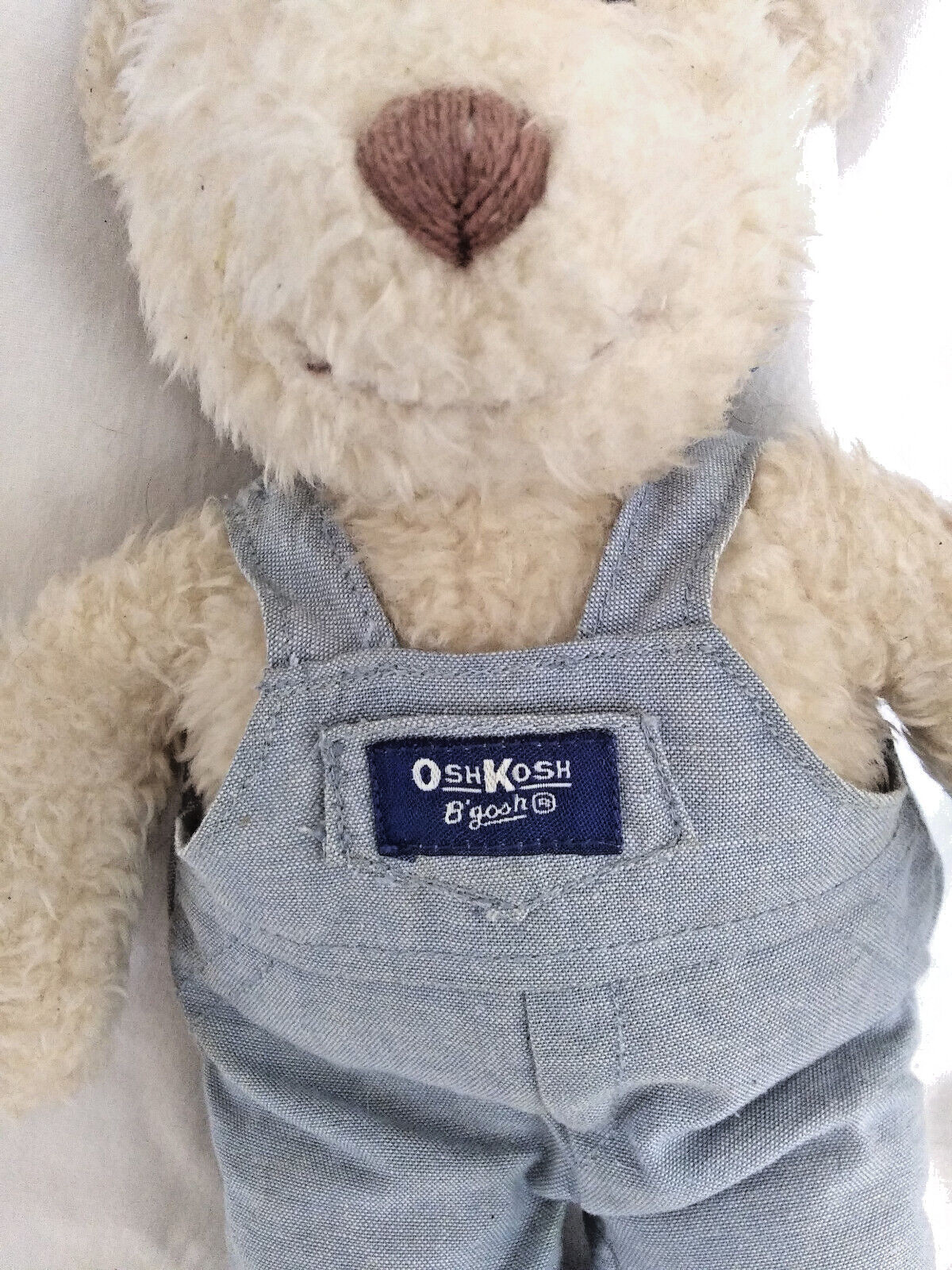 Vintage OshKosh B'Gosh EDEN Teddy Bear in Blue White Overalls