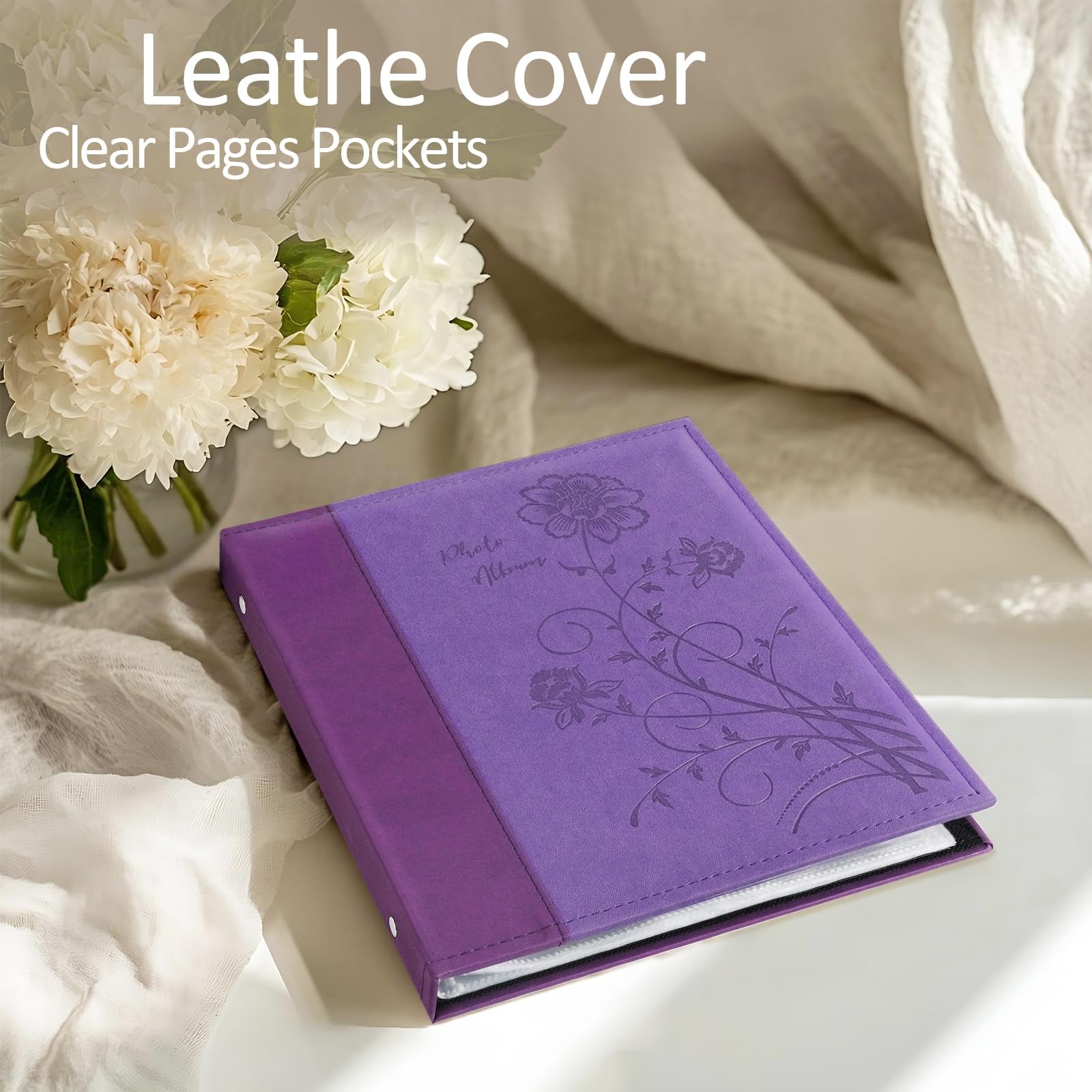 Photo Album 8x10 Clear Pages Pockets Leathe Cover Slip Slide in Photo Album H...