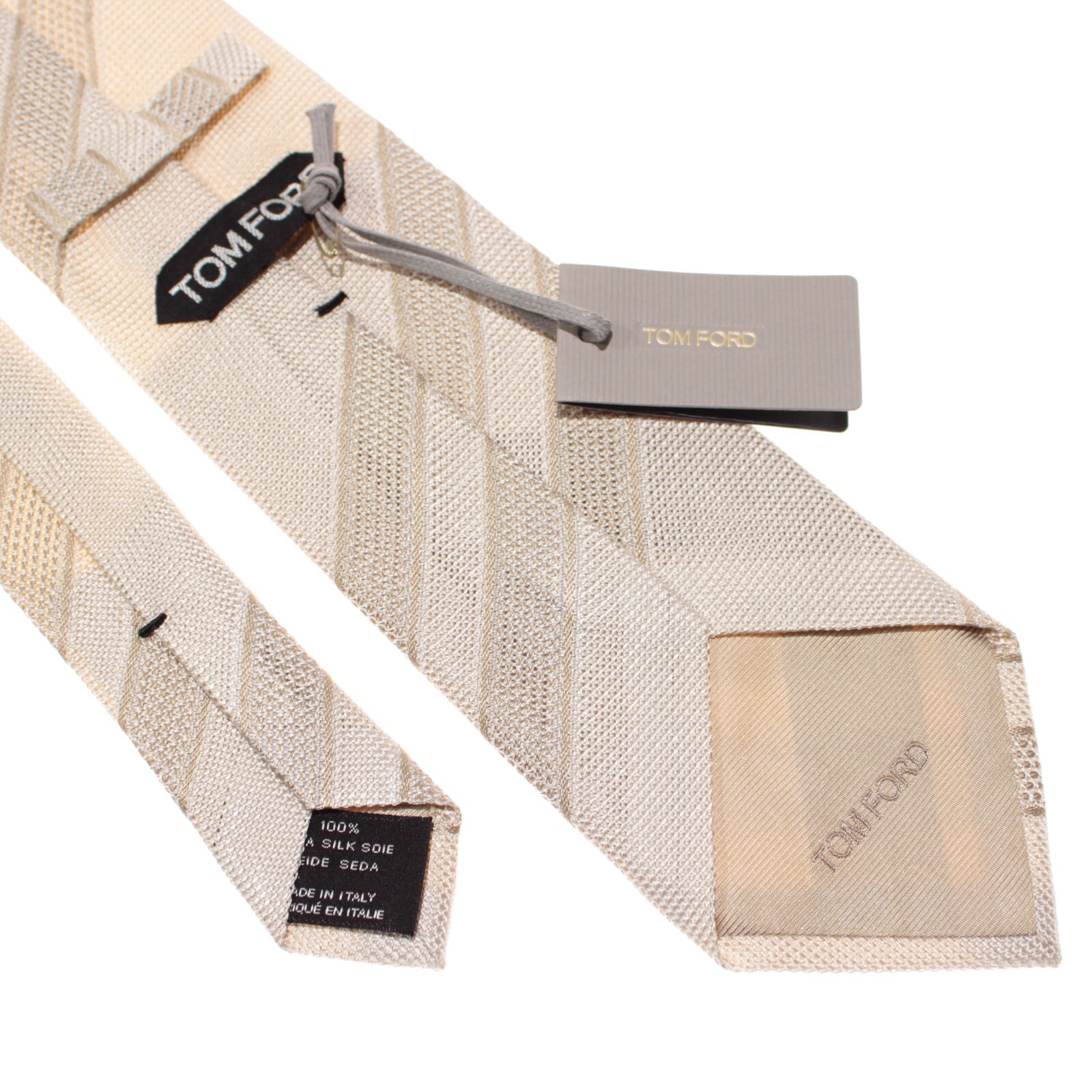 Tom Ford NWT Neck Tie in Light Beige Stripes 100 Silk Made in Italy