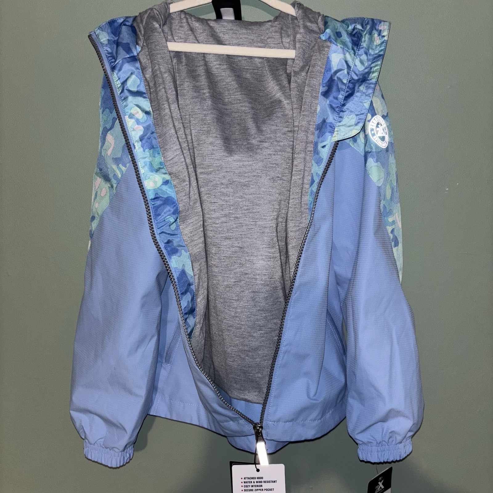 ZeroXposur Kids Snow Jacket Size 7/8 Blue Camo Hooded Zip Up Winter Coat NWT