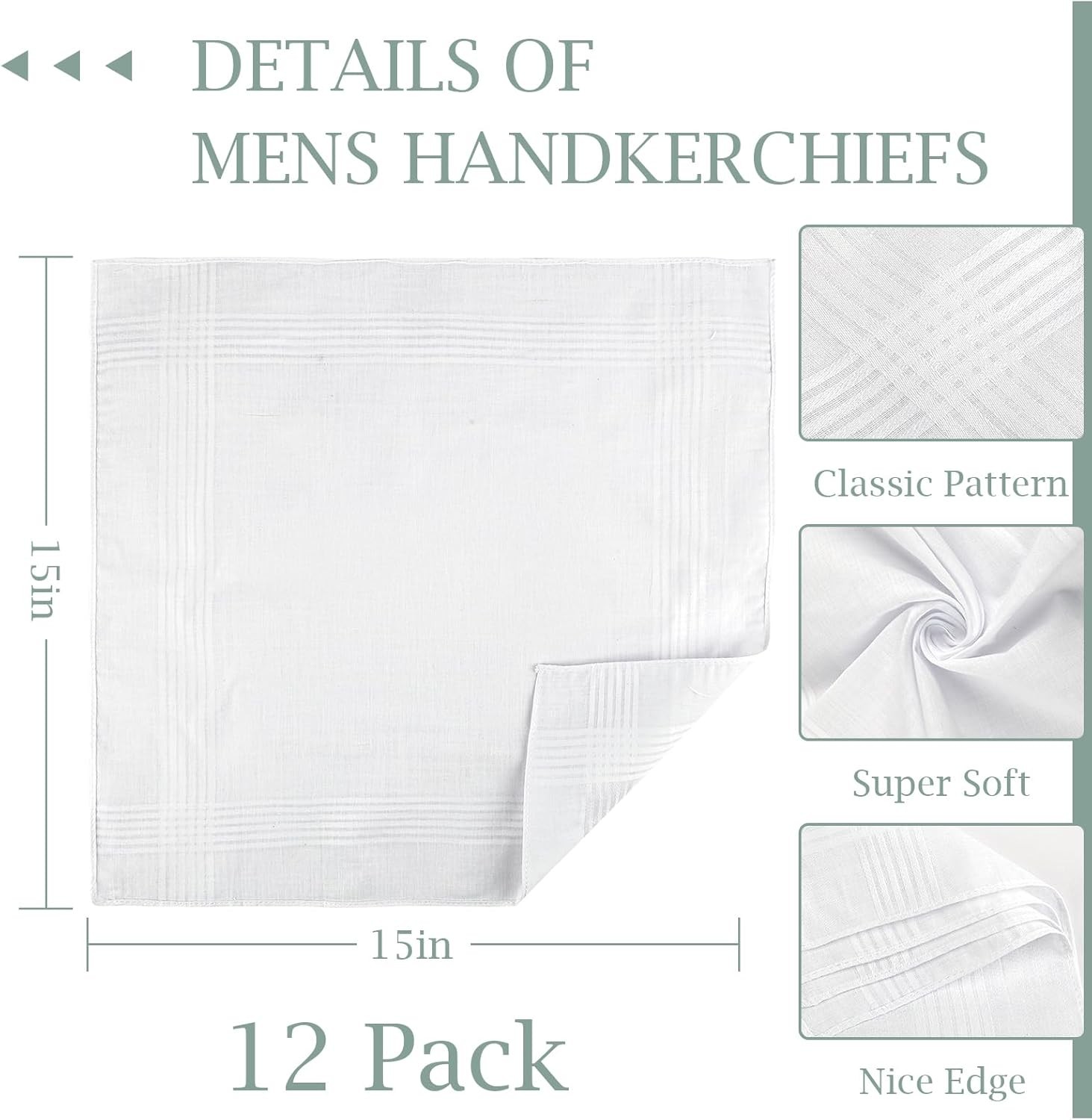 как выглядит 12 Pcs MenS Handkerchiefs, 100 Soft Cotton White Handkerchiefs for Men, Classi фото