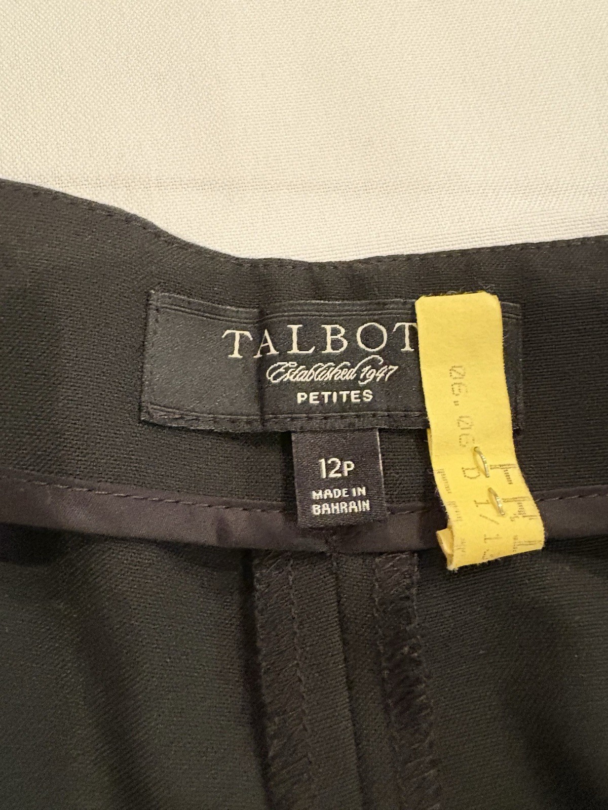 Talbots Black Classic Slim Tapered Side Zip Dress Pants Size 12 Petite