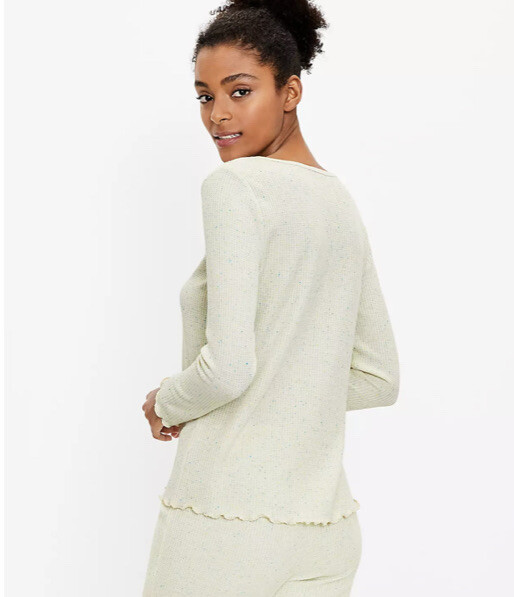 как выглядит NWT LOFT Womens Flecked Waffle Pajama Top and Jogger SET - Size Large фото