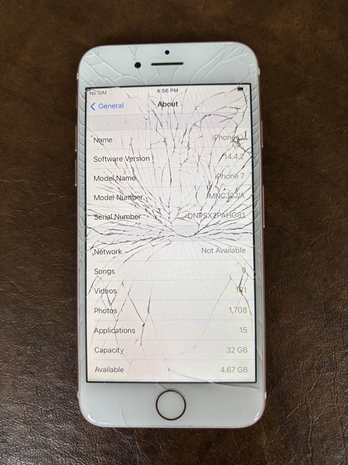 Apple iPhone 7 32GB model A1779 Rose Gold Unlocked - Working, cracked screen