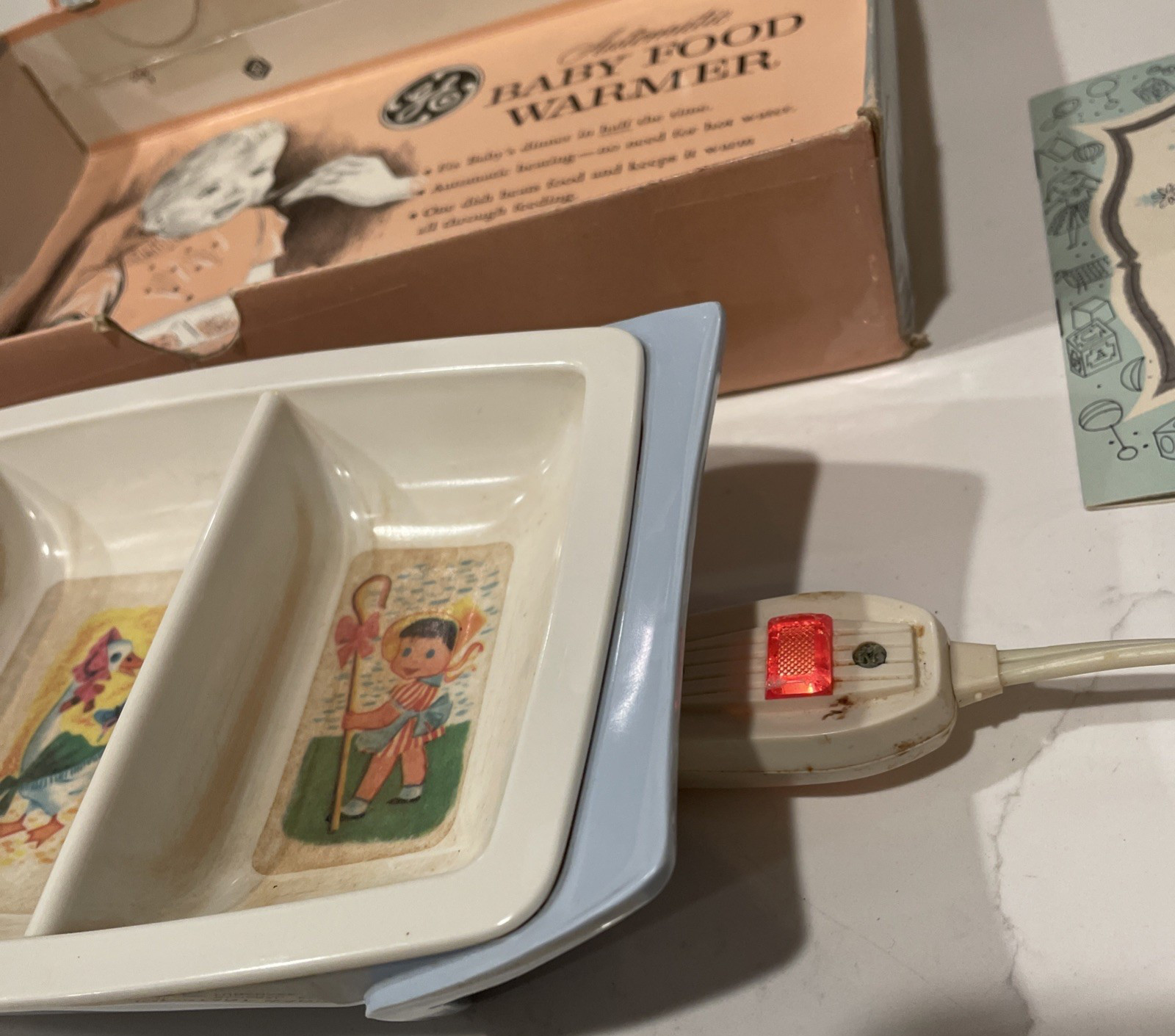 General Electric Vntg Heat Serve Baby Food Warmer Dish Box Paperwork Works.