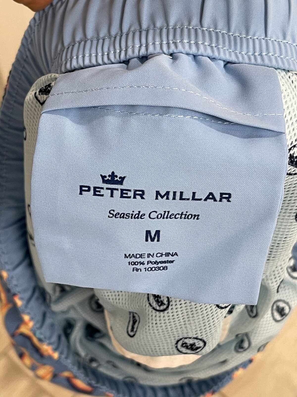 Peter Millar Seaside Swim Trunks Men's Medium Blue 7.5 Inseam AOP