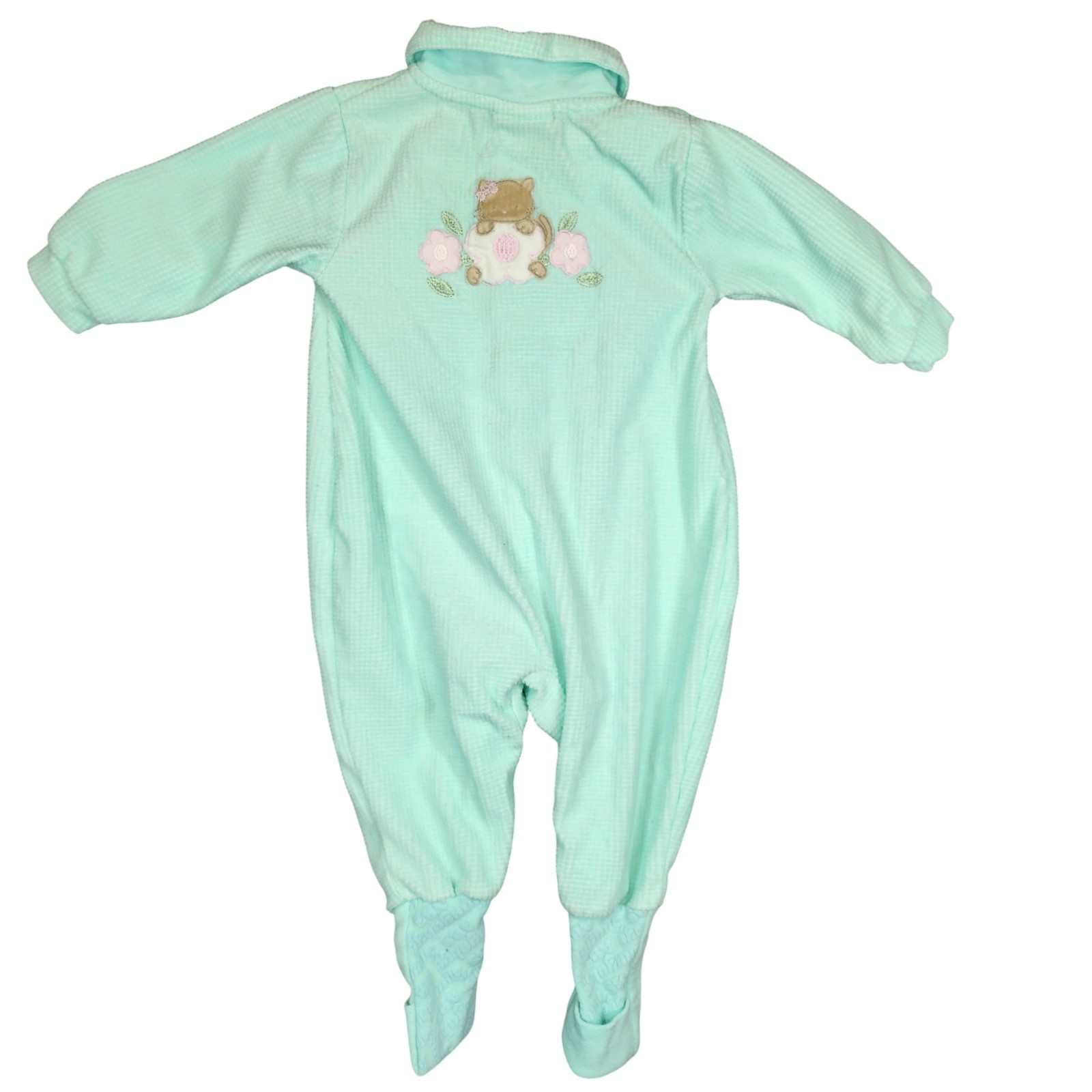 как выглядит Vintage Sungabye Convert-A-Foot Baby Sleeper 6M Mint Green Cat Flowers Romper фото
