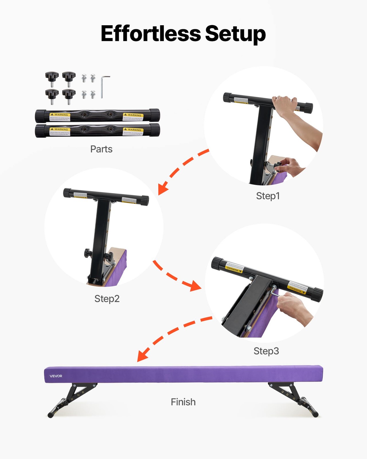 VEVOR 8FT Adjustable Gymnastic Balance Beam 6.7/15/18.5/21.3/22.3 Inch Purple