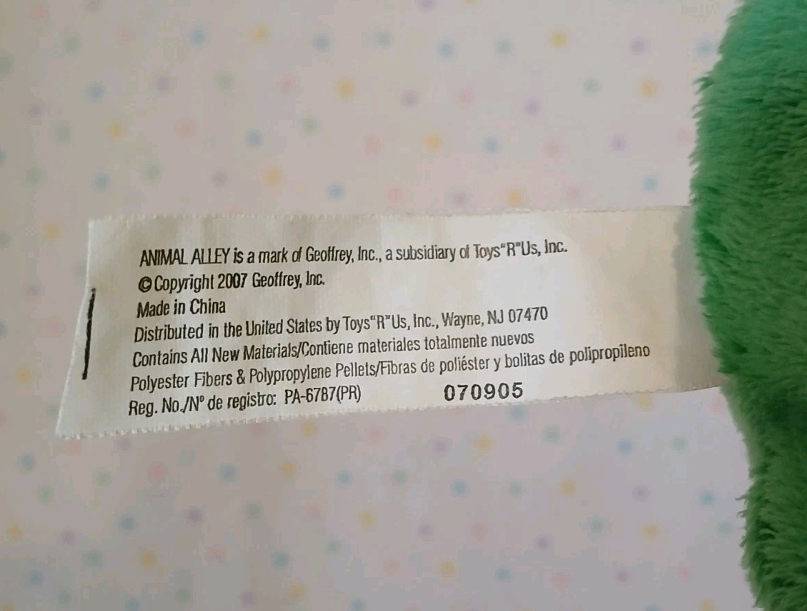 как выглядит Animal Alley 2007 Green Frog Stuffed Animal Plush 13" Yellow Eyes Gingham Bow фото