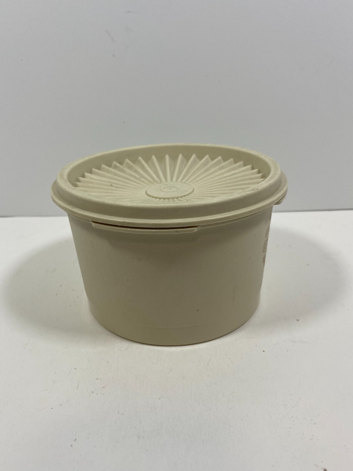 • Vintage Tupperware 1297-10 with Matching Starburst Lid White and Tan