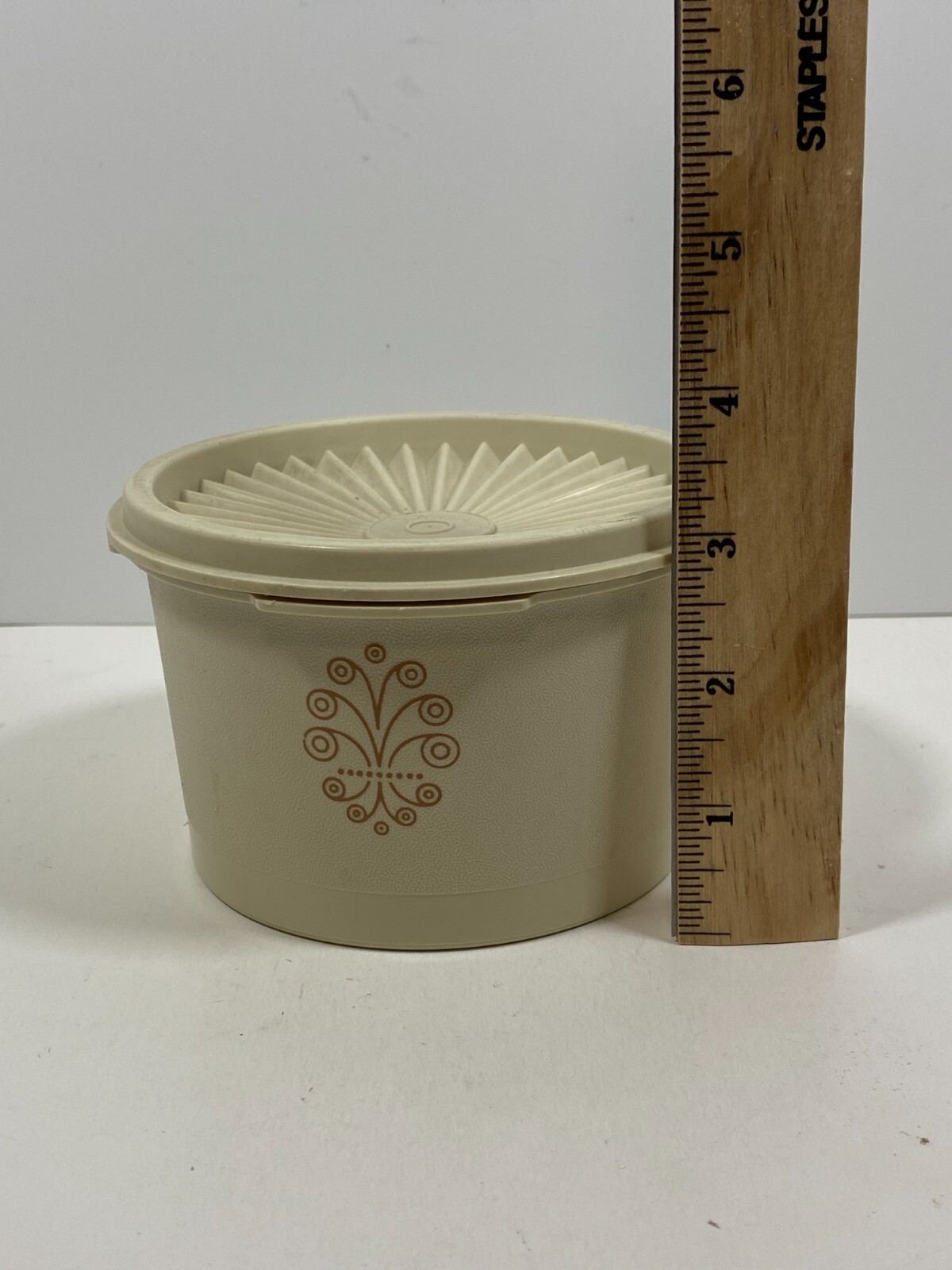 как выглядит Vintage Tupperware 1297-10 with Matching Starburst Lid White and Tan фото
