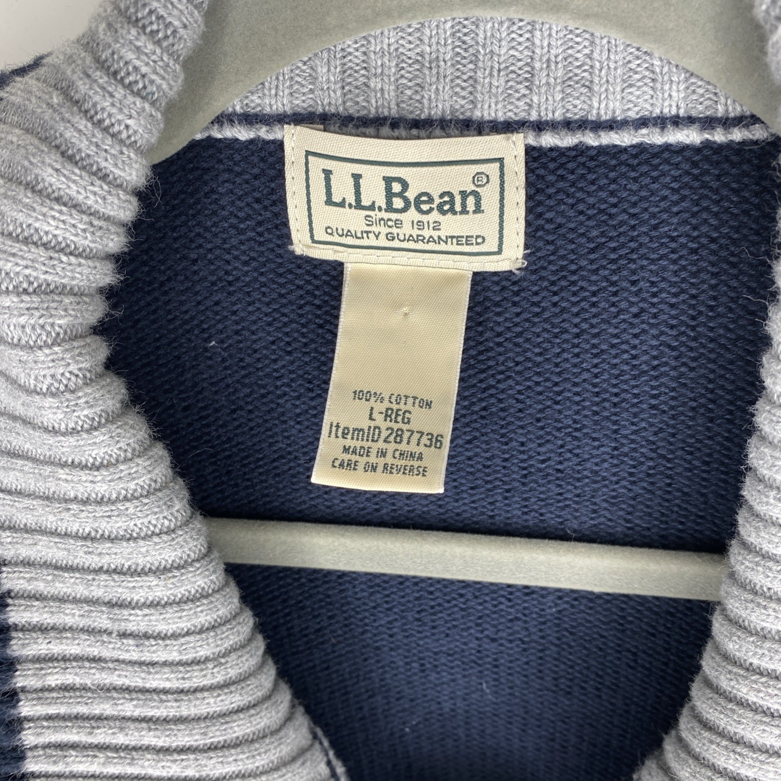 LL Bean Men s Sweater Knit 1/4 Zip Mock Neck LS Pullover Large Navy 287736
