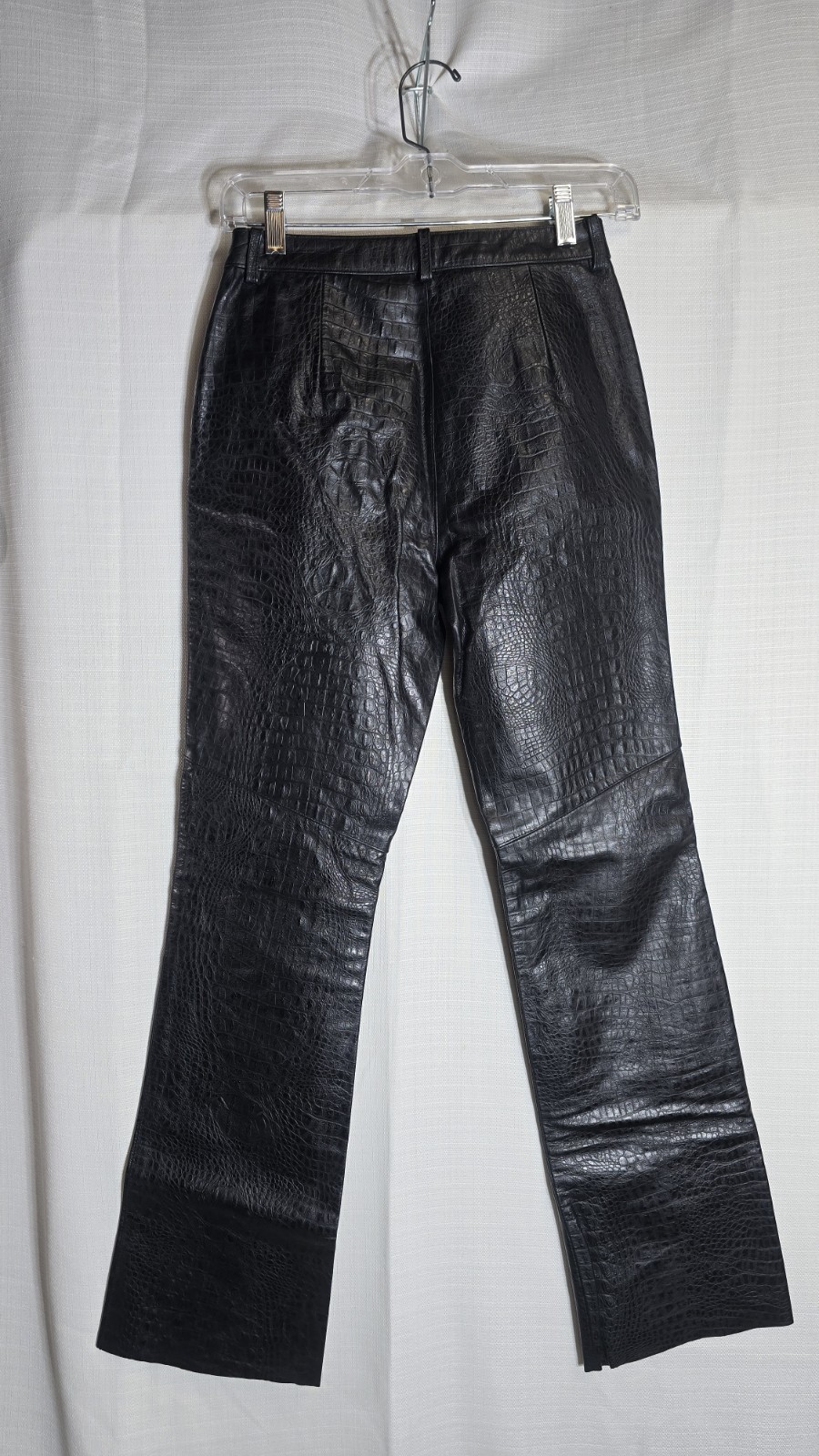 Vtg Harley Davidson Motor Clothes Womens Black Leather Croc Riding Pants Sz 30/2