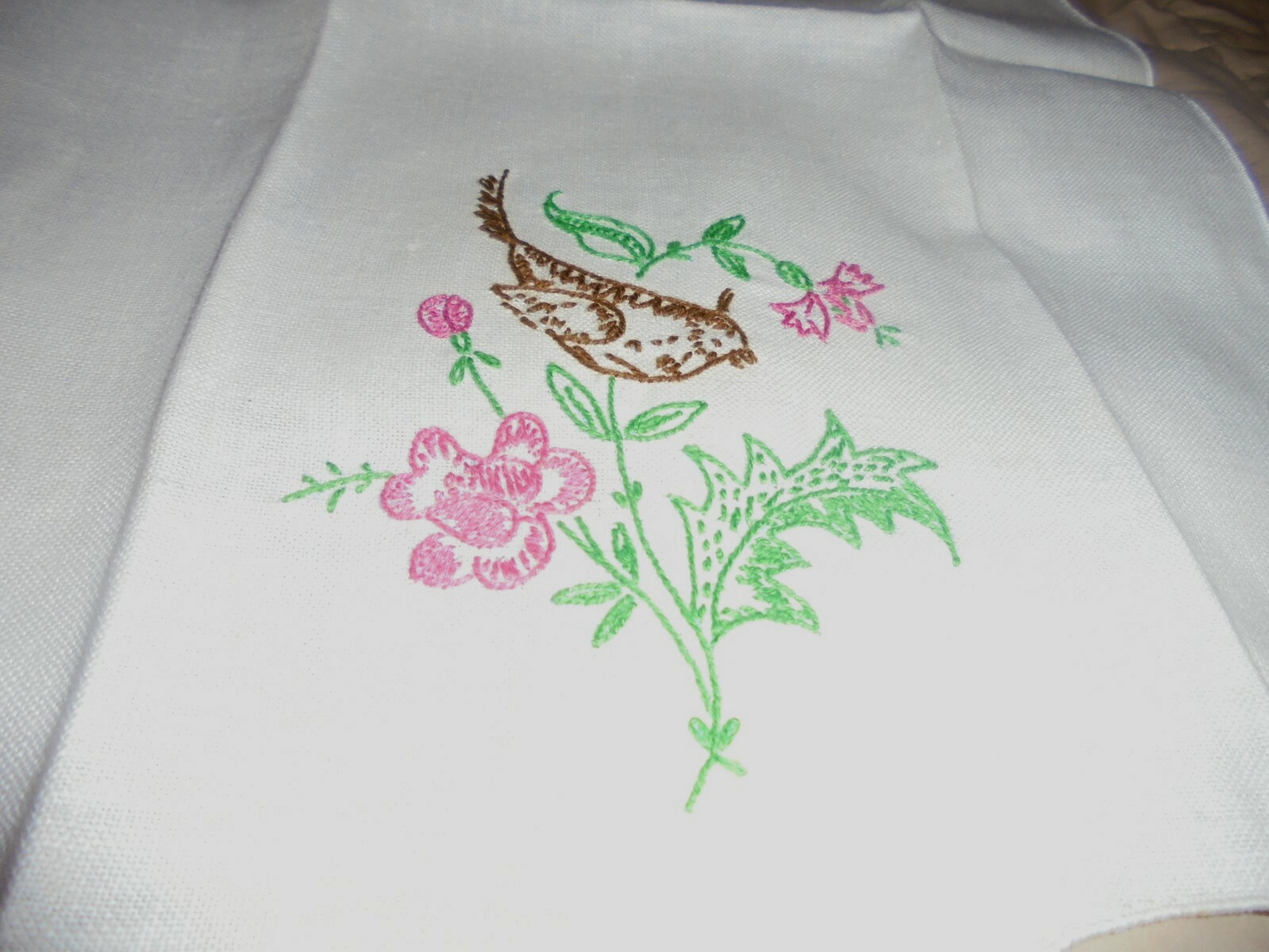 как выглядит Vintage Tea Towel Bird Floral Design Hand-Embroidered Fingertip -Guest Room 58 фото