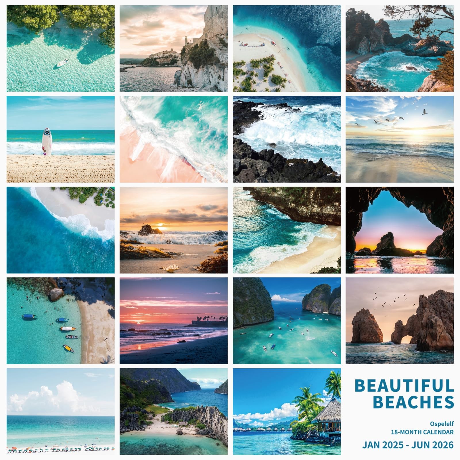 2025-2026 Beach Wall Calendar 12x12 Spiral 18 Months Jan 2025 - June 2026