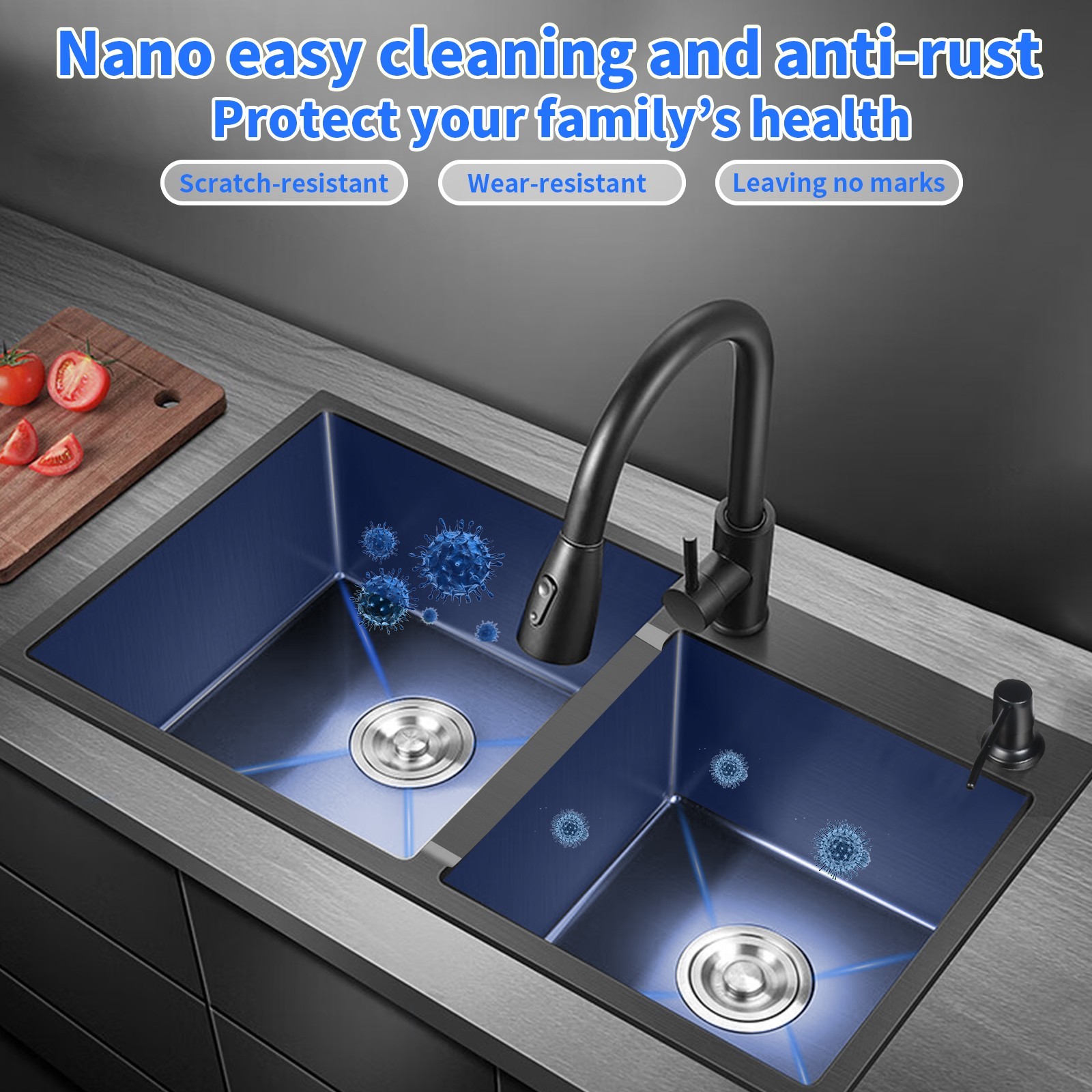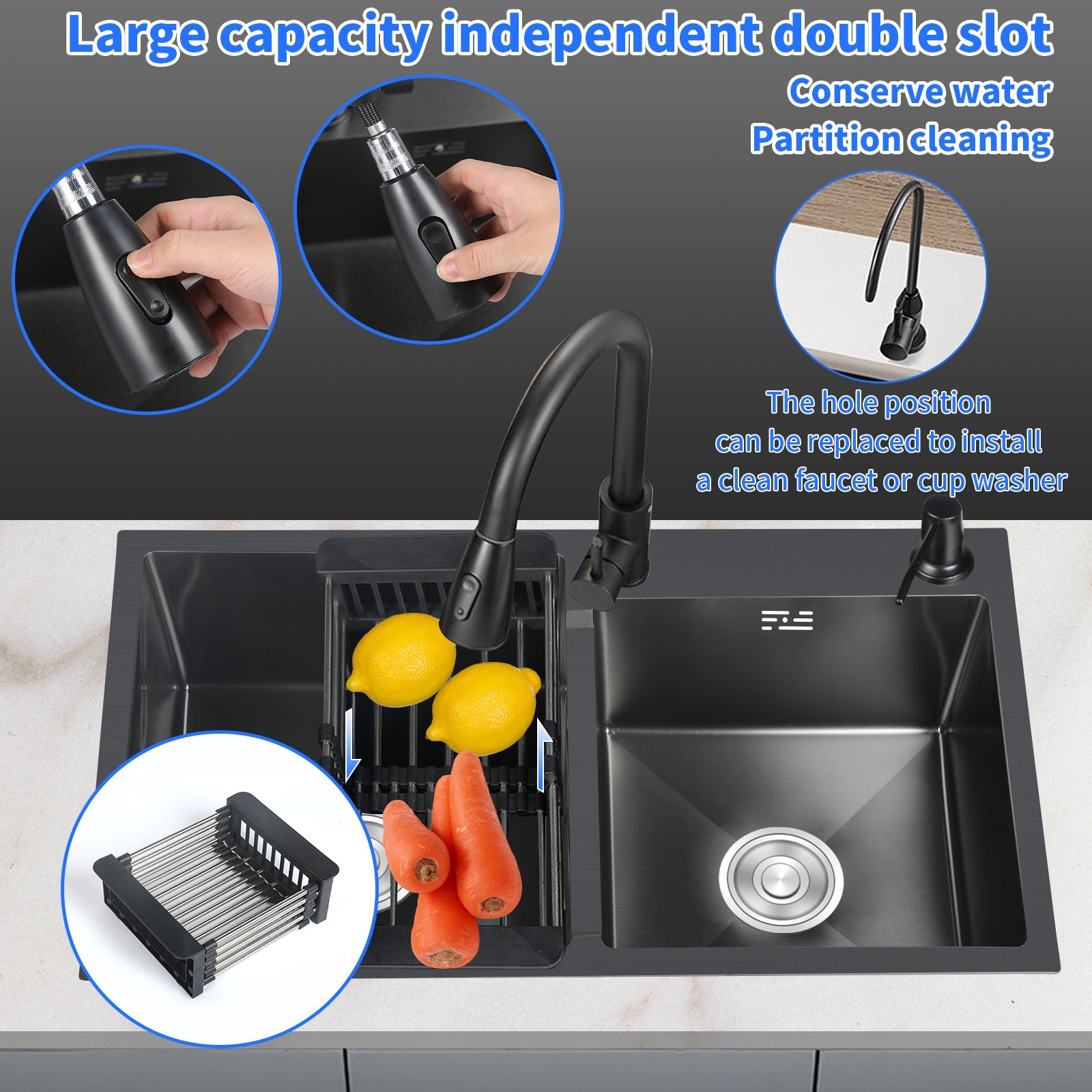 как выглядит 32 inch Black Stainless Steel Kitchen Sink Double Bowl Workstation Drop In Set фото