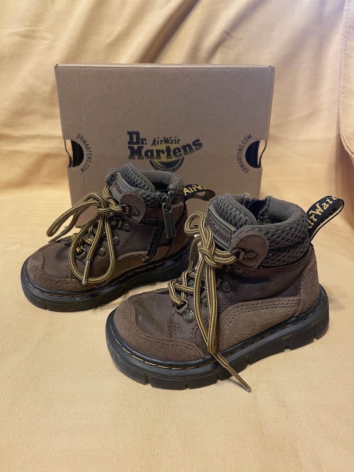 Toddler Boys Dark Brown Khaki Dr Martens Raffe Air Wair Boots 8