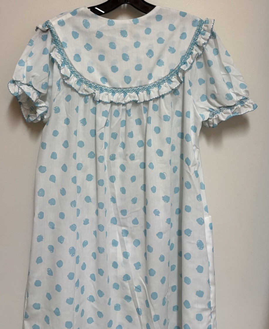 Vintage Barbizon Seraphim Batiste Blue White Polka Dot Nightgown House Dress Lg