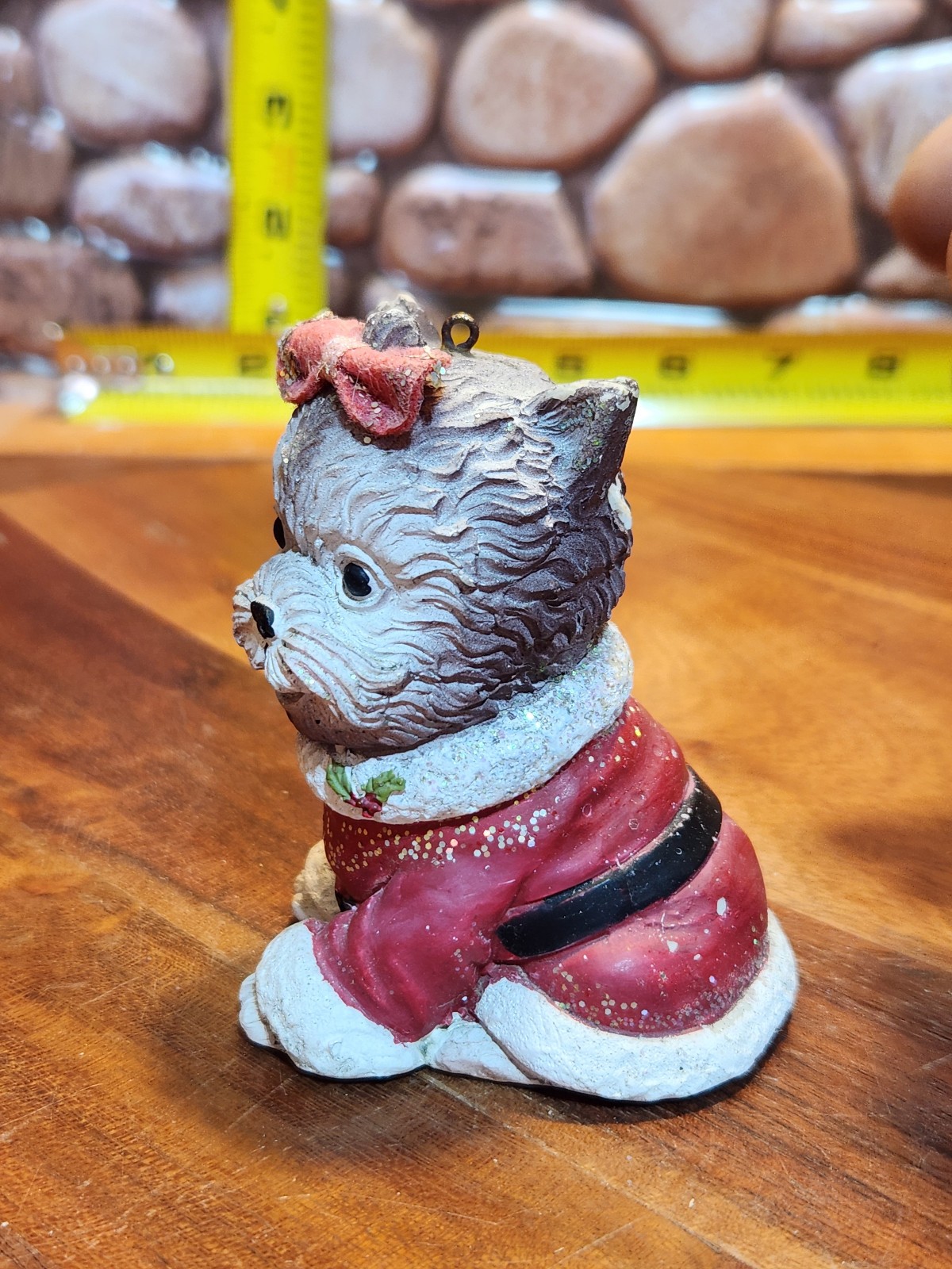 как выглядит Yorkshire Terrier Dog Christmas Ornament Santa Hat Suit Glittery Bow Resin Doggy фото