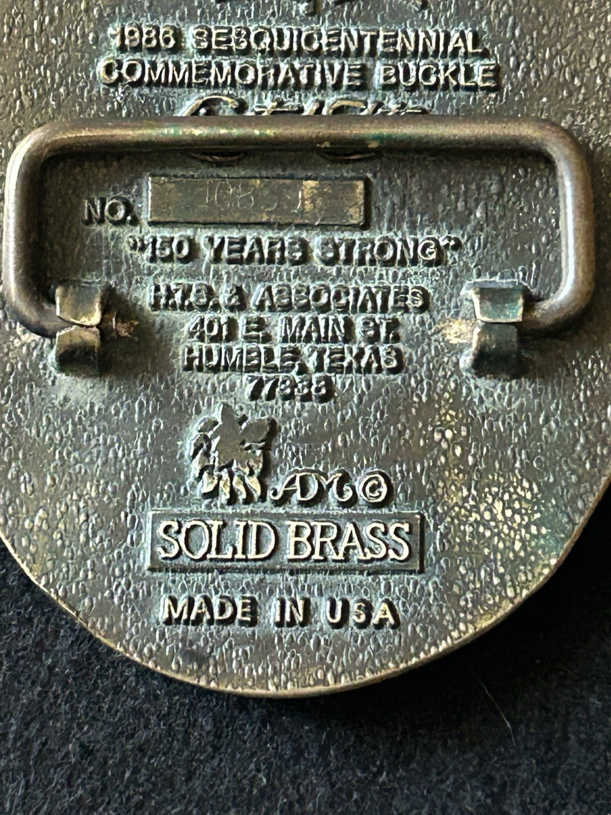 Vintage Texas Sesquicentennial Solid Brass Belt Buckle Limited Award Design 1986