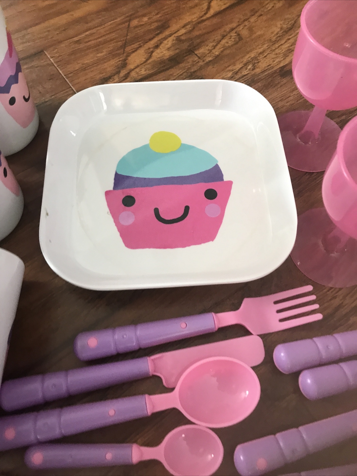 как выглядит Kids Pretend Play Plastic Cup Dish and Utensil Dinnerware Cupcake Disney 28 Pcs фото
