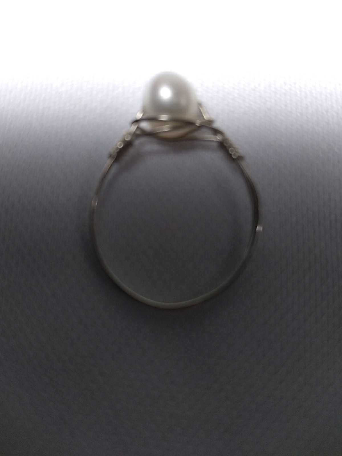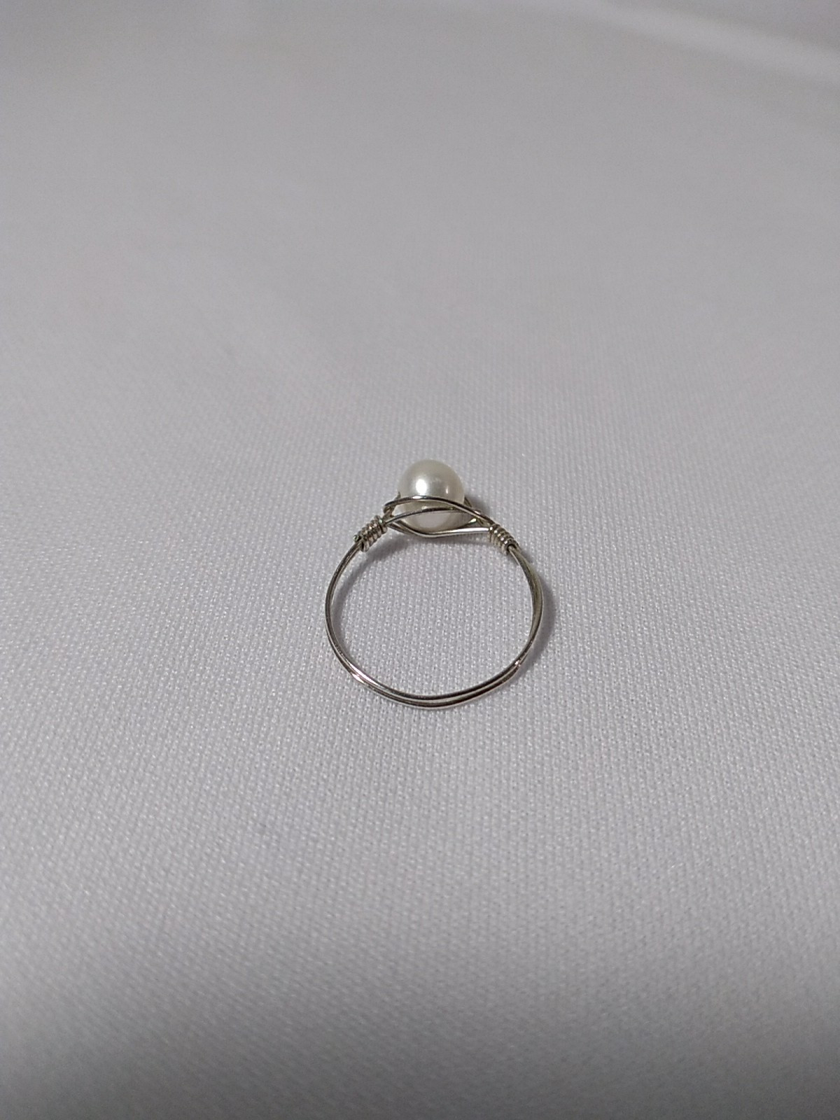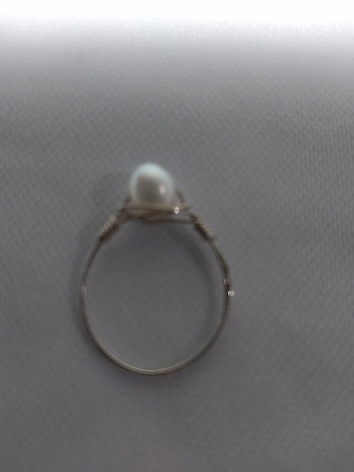 Handmade Sterling Silver Wrapped Wire Ring with Pearl Size 7